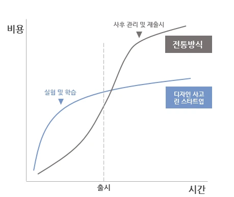 일부 기업들에서 제공하는 자료들을 보면 린 스타트업이나 디자인 사고의 방식들을 이용할 때 제품 출시 후 비용을 크게 줄일 수 있다고 한다. 많게는 시간과 비용을 40% 정도 절감할 수 있다고 하니 결코 무시할 수치는 아닌 것 같다.