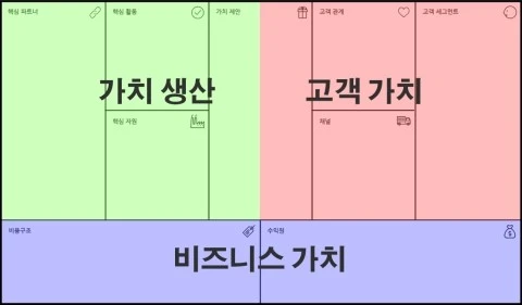비즈니스 모델 캔버스는 고객 가치와 비즈니스의 가치, 두 가지 가치를 중심으로 비즈니스의 각 요소들이 어떻게 연결되어 있고, 어떻게 가치 창출에 기여하는지 한눈에 파악할 수 있게 도와주는 도구이다. 비즈니스 모델 캔버스를 사용할 때는 고객 가치, 가치 생산, 비즈니스 가치, 이 세 부분이 각각 비즈니스에서 어떤 기능을 담당하고 있는지 이해하고 각 블록들이 가치의 창출에 어떻게 기여하는지 생각해 봐야 한다.