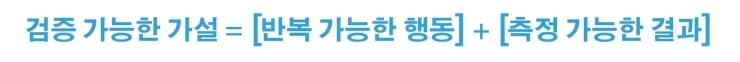 검증을 진행하기 위해서는 가설 검증을 위한 실험을 설계해야 한다. 먼저 해야 하는 것은 가설을 검증 가능한 형태로 바꾸는 것이다. 검증 가능한 가설은 행위와 결과의 형태로 이루어지는 것이 좋다. 반복적으로 특정 행동을 하면 특정 결과가 나올 것이라는 형태를 지녀야 한다. 예를 들면 “사람들이 내가 풀고자 하는 A라는 문제에 관심이 있다면 N 명에게 이 문제에 관하여 회신 요청 이메일을 보낼 경우 M 회 이상의 회신이 올 것이다.” 같은 형태다.