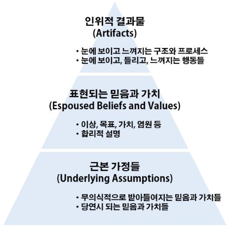 에드거 샤인(Edgar H. Schein)에 의하면 기업 문화는 세 가지 차원으로 나누어 볼 수 있다고 한다.