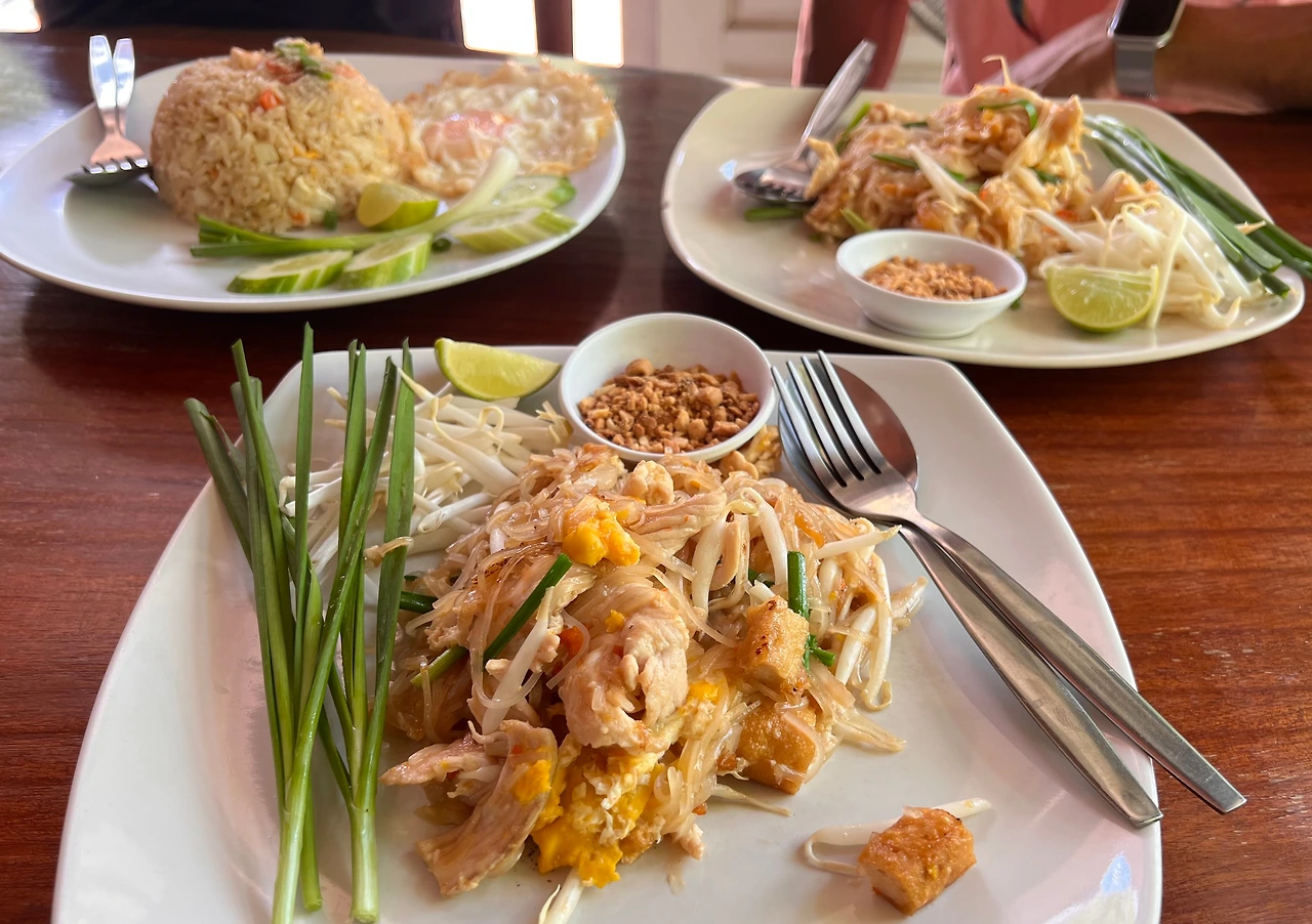 점심과 저녁은, 어제 점심과 저녁을 먹었던 그 식당에 다시 갔다. 무려 네 번 연속 외식을 그 집에서 한 셈이다. 현지 식당 치고는 비교적 넓고 깨끗하고, 가격은 비슷한데 음식도 깔끔한 편이어서, 단골이 되어 버렸다. 나는 계란 프라이를 추가한 볶음밥을 먹었고 다른 둘은 팟타이를 먹었다. 190밧이 나왔다. 저녁에는 총은 그린 커리를, 용관은 볶음밥을, 나는 캐슈너트 볶음밥에 계란 프라이를 추가해 먹었고, 220밧이 나왔다.