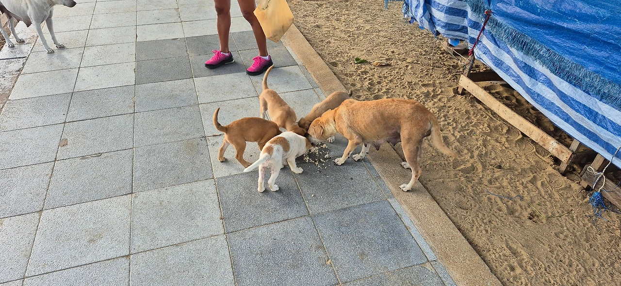 달랑 2시간 시차인데, 여전히 극복하기가 어려운가 보다. 태국 시간으로 5시에서 6시 사이, 한국 시간으로 7시에서 8시 사이에 꼭 일어나게 된다. 오늘 아침도 용관이 먼저 일어나서 부스럭거리고, 나도 같이 일어났다. 일어난 김에 좀티엔 해변에 갔다. 가는 길에 중국 식품점이 있는데 어쩌면 김치가 있겠다 싶었다. 구글 맵으로 검색해 보면 파타야 시내 정도 가야 김치를 제대로 구할 수 있다.