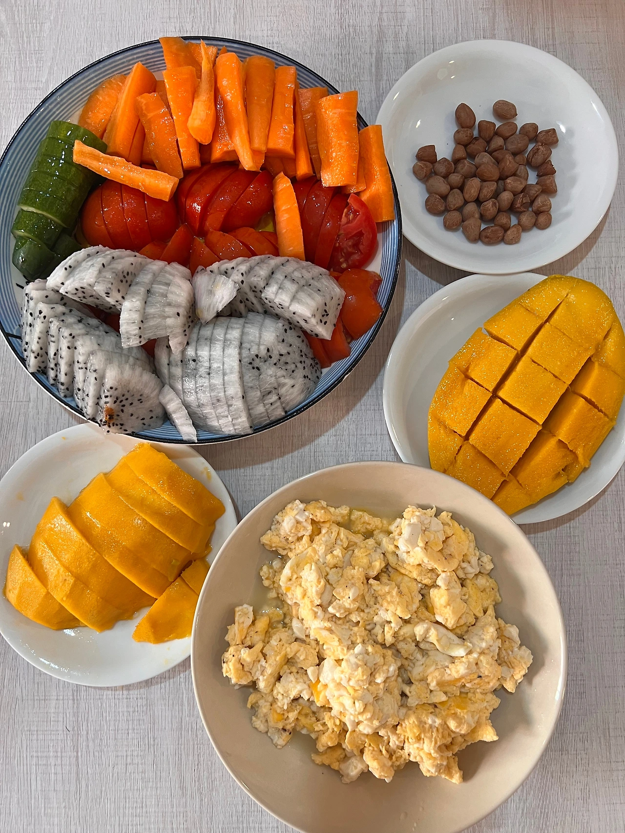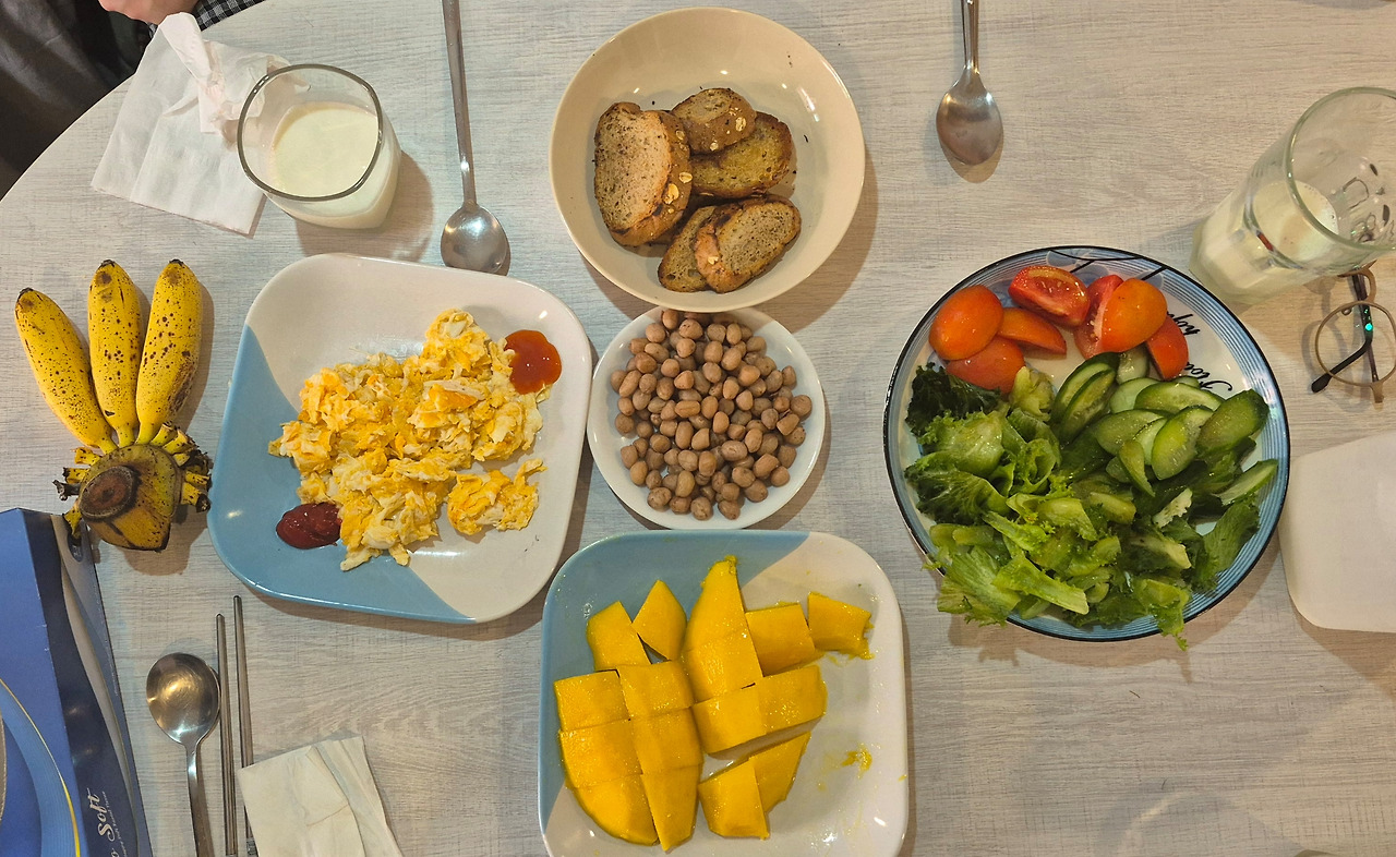 아침을 먹고 예배를 드렸다. 오늘은 총이 주로 아침을 준비했는데, 망고를 자르는 칼 놀림이 불안하다.