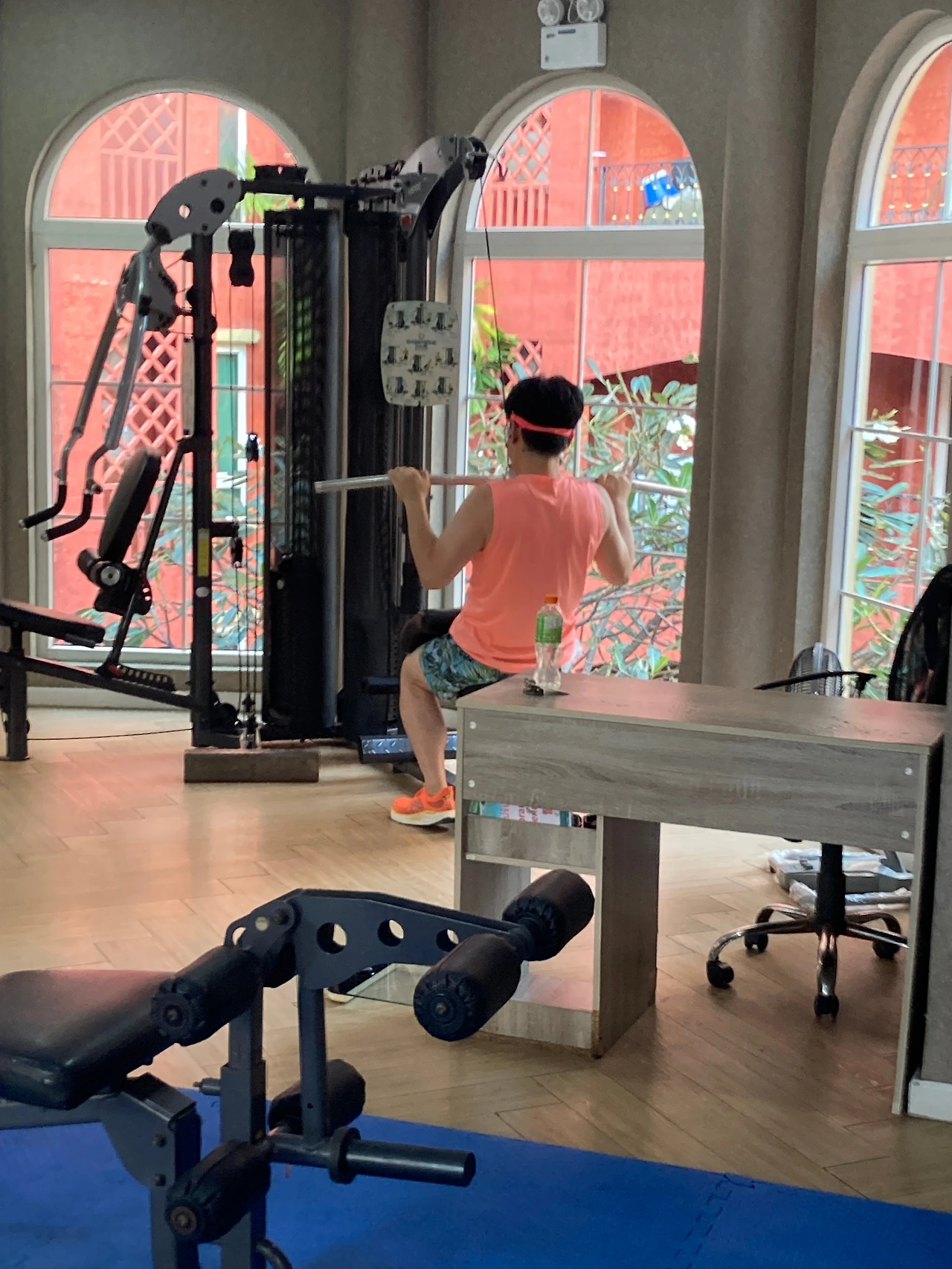 잠깐 쉰 후 헬스장으로 향했다. 난 가볍게 달린 후, 메트를 깔아놓고 스트레칭과 허리를 강화하는 운동과 플랭크를 한다. 그 후 하체와 코어 중심으로 운동한다. 어깨 치료를 받았던지라, 상체운동은 당분간 안 하고 있다. 총과 용관은 오자마자 기구로 근력운동부터 시작한다.