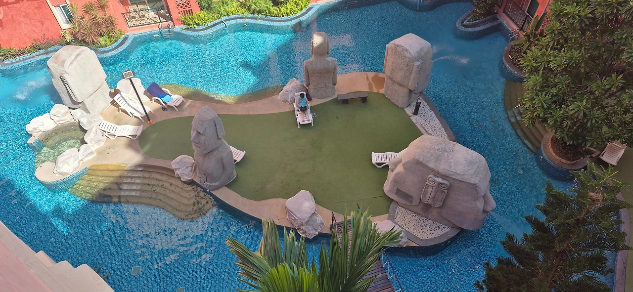 오늘은 습도도 낮고 산들산들 바람도 불어 상쾌하다. 총은 식사 후에 수영장 썬 베드에서 작업하고, 용관은 베란다에 앉아 글을 쓴다.