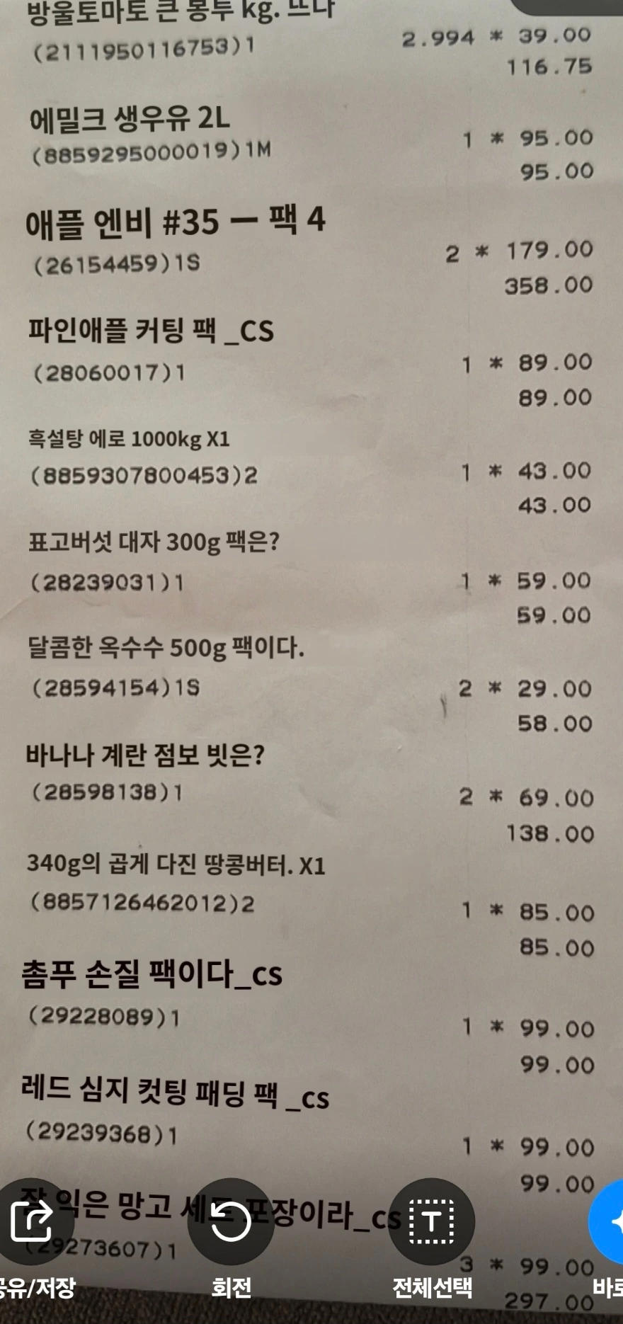 오늘도 3천 밧 넘게 쇼핑을 했다. 열대 과일의 나라이니 과일 종류를 많이 샀다. 다음 주 총과 용관의 생일용 치즈 케이크도 샀다, 비록 조각 케이크이지만. 8밧짜리 요거트 소프트콘도 하나씩 먹어줘야지. 샐러드 코너에서 시식을 하고 샐러드 한 팩이 얼마냐고 물으니, 판촉행사로 무료라고 한다. 이게 웬 개꿀. 1인당 한 개씩 가져도 되냐 했더니, 그건 안 된단다. 내가 좀 너무 했지?