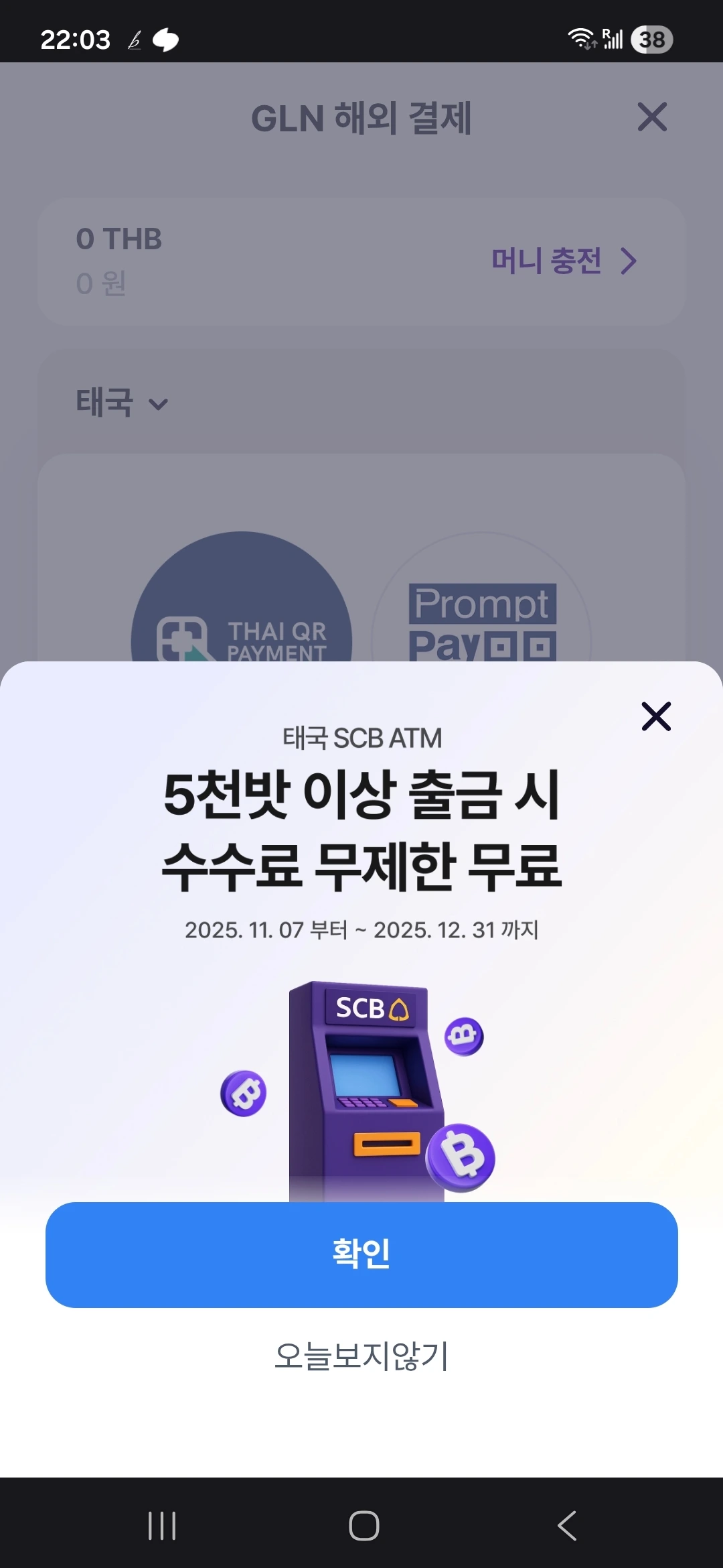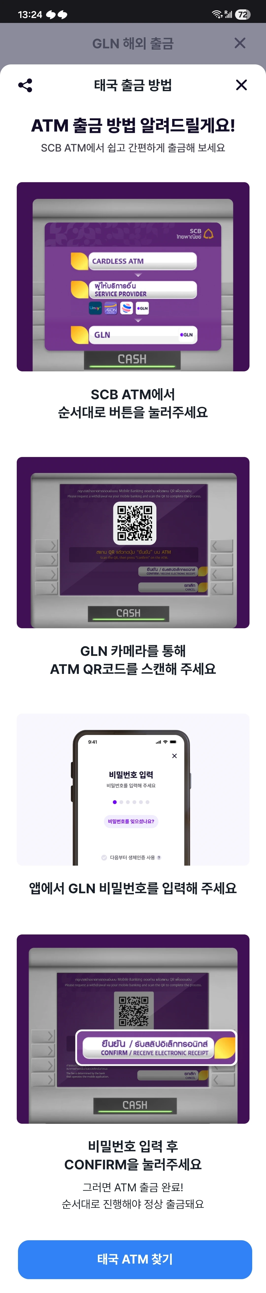 어떻게 하면 태국에서 현금을 가장 저렴하게 인출할 수 있나. 최종적으로 알아낸 SCB은행 ATM기로 GLN QR인출을 시도했다. 그런데, 또 수수료가 많이 붙었다. 수수료 무료 이벤트라 85밧을 환급해 준다는데, 그래도 계산이 안 맞는다. 뭐가 잘못된 건지 도무지 모르겠다. GLN에서 미리 바트화로 환전을 해 뒀어야 했나.