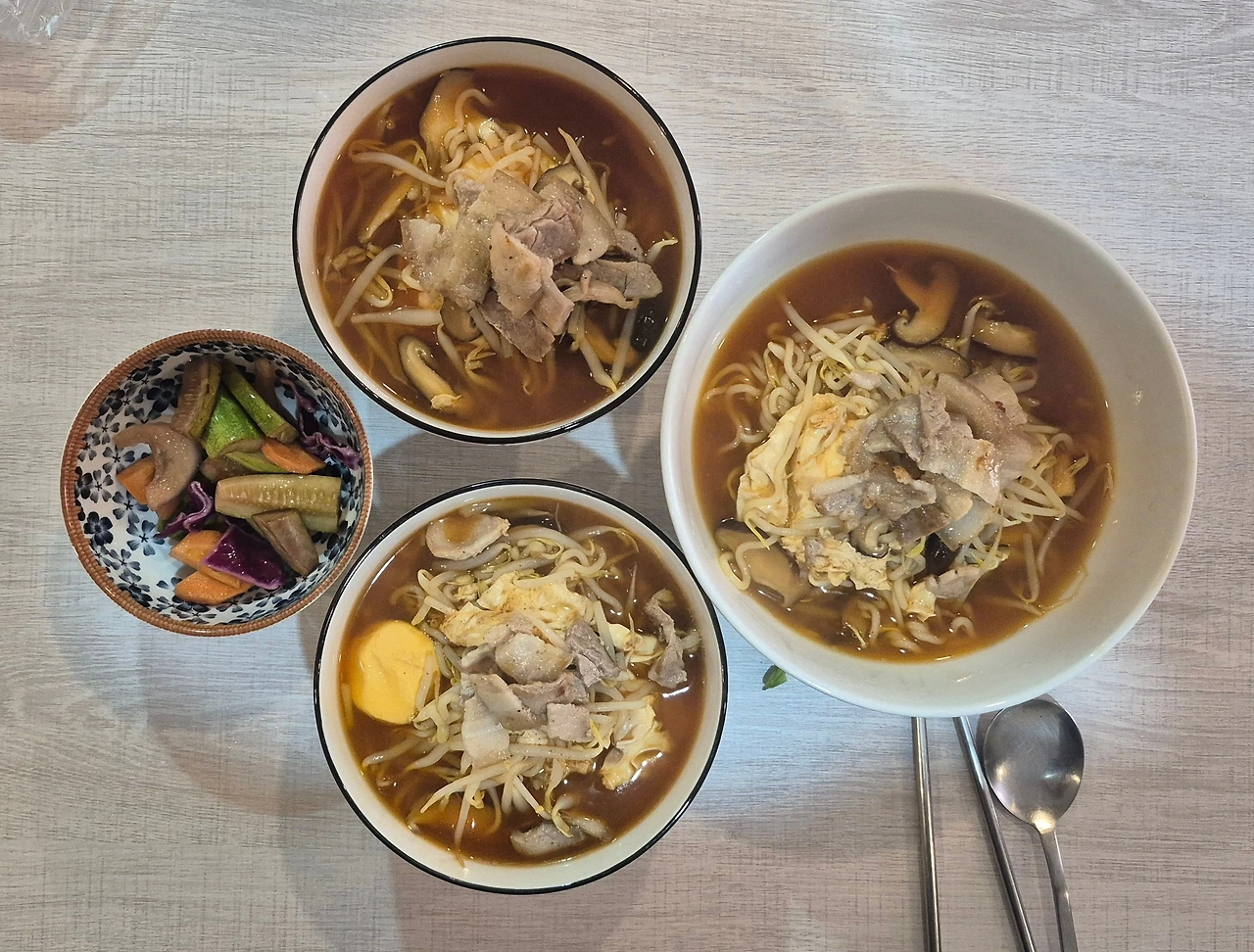 돼지고기와 닭날개 등을 많이 사 왔지만, 너무 지쳐서 그냥 버섯과 숙주를 넣어 라면을 끓여 먹었다. 물론 사리면의 쩐맛을 제거하기 위해서, 면만 먼저 삶아 여러 차례 씻어 다시 조리하는 번거로움이 있었지만.
