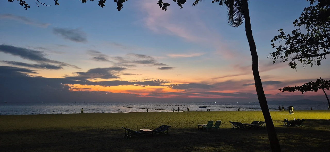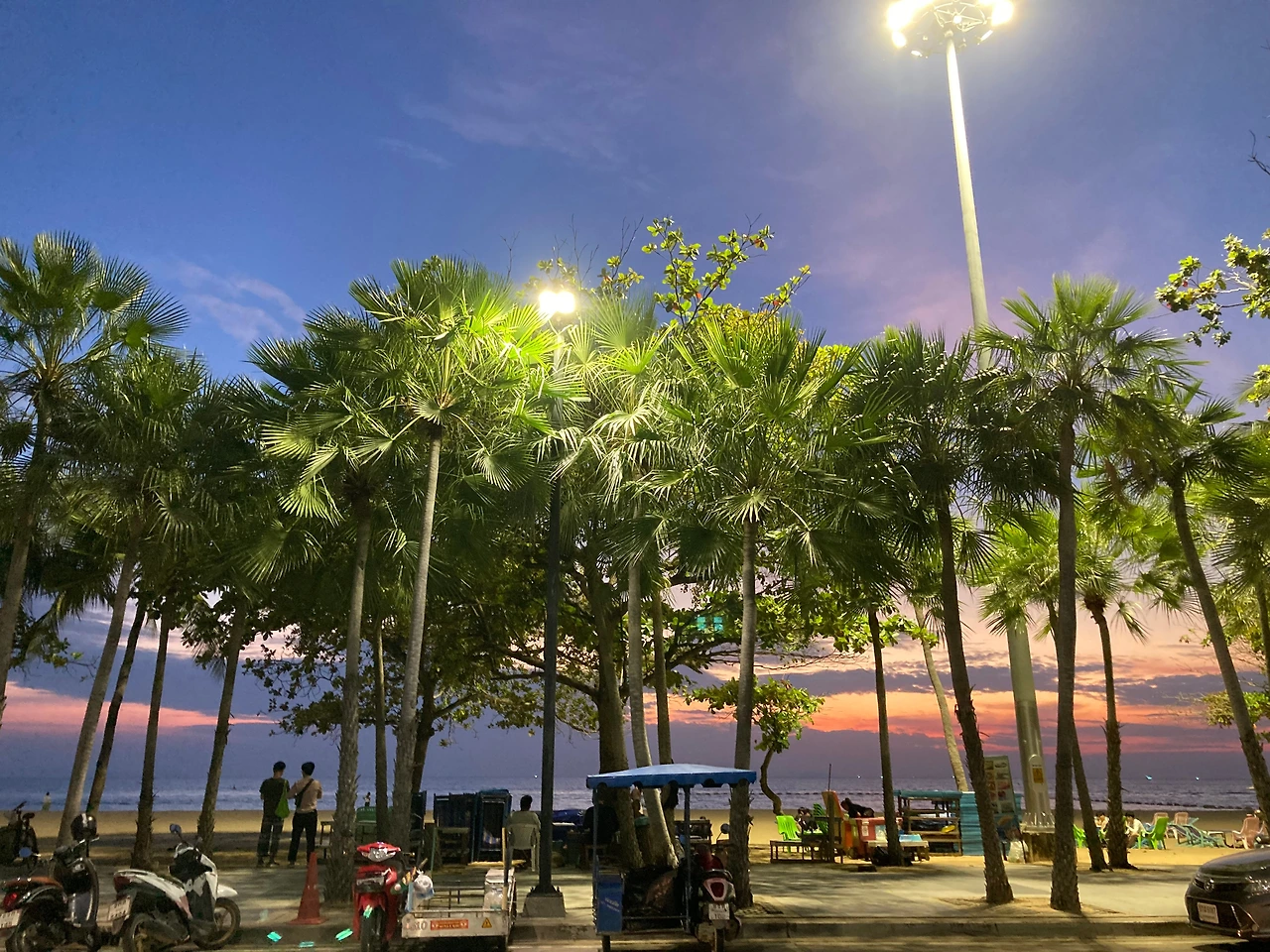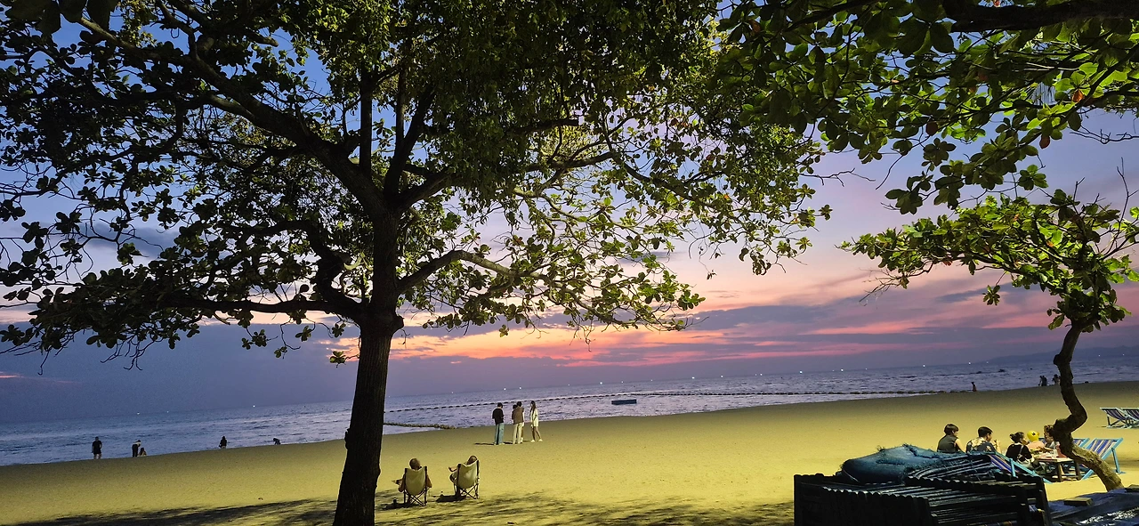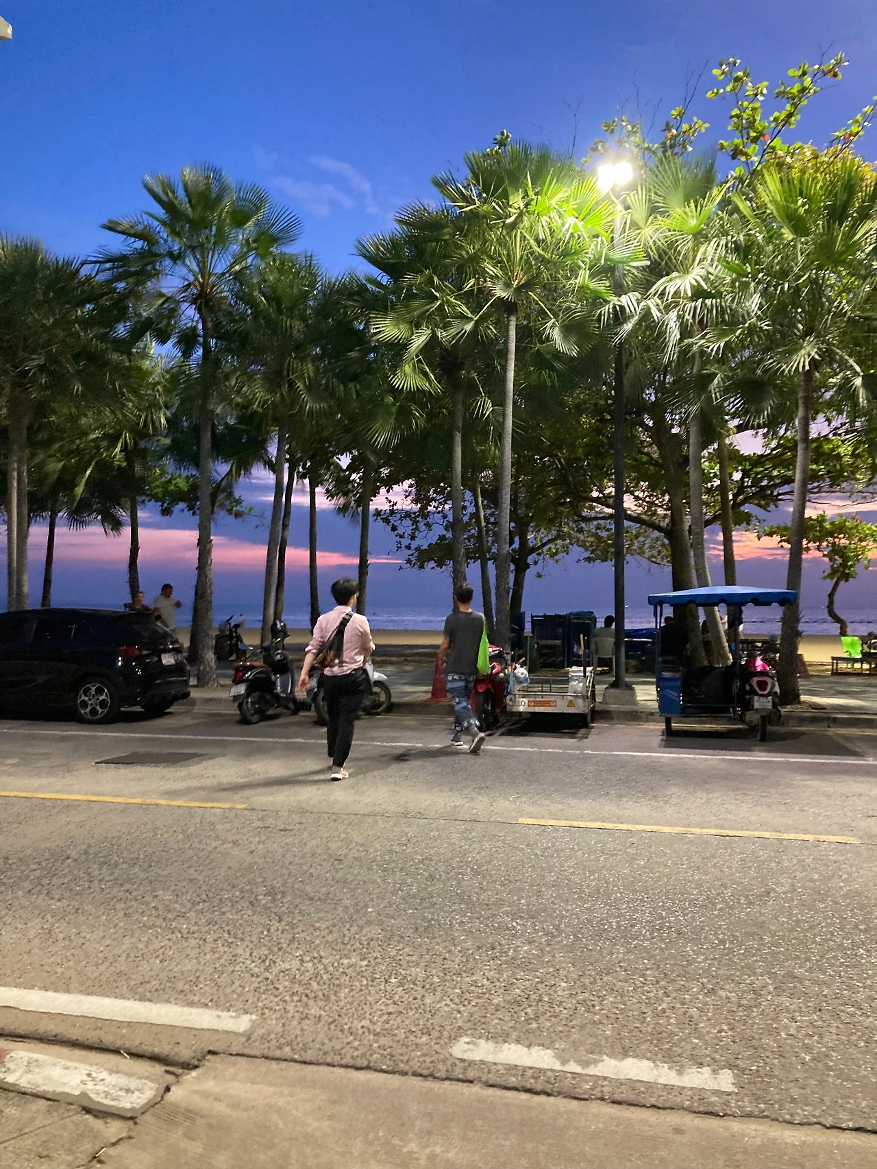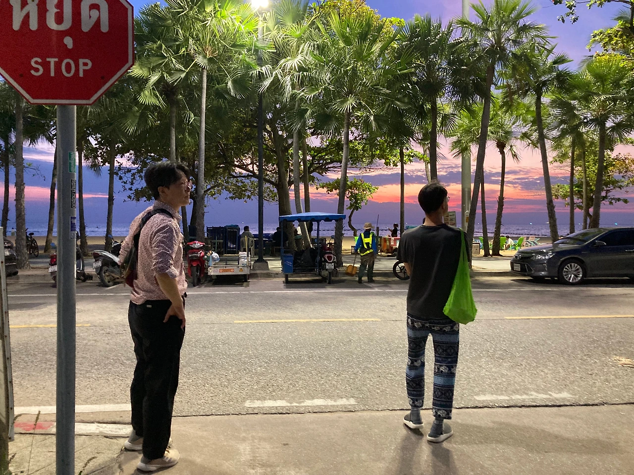 저녁은 좀티엔 야시장에서 케밥을 먹기로 했다. 가는 길에 노을이 예뻐 바닷가에 들렀다.