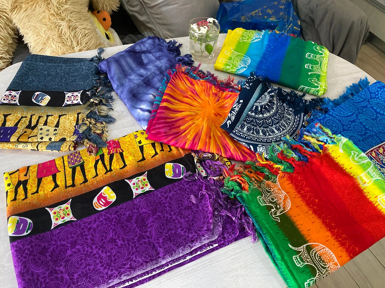 허탈하게 돌아가는 길에, 뭔가 '사롱'을 팔 것 같은 가게가 보였다. 120 ×180cm 사이즈에 상품이 많았다. 1장당 150밧이라기에 여러 장 사면 깎아 줄지 물었다. 도매고, 정가제라 했다. 8장을 고른 후, 1200밧을 1100밧까지 해달라 과장된 몸짓으로 고개 숙여 절하니, 깎아줬다.
