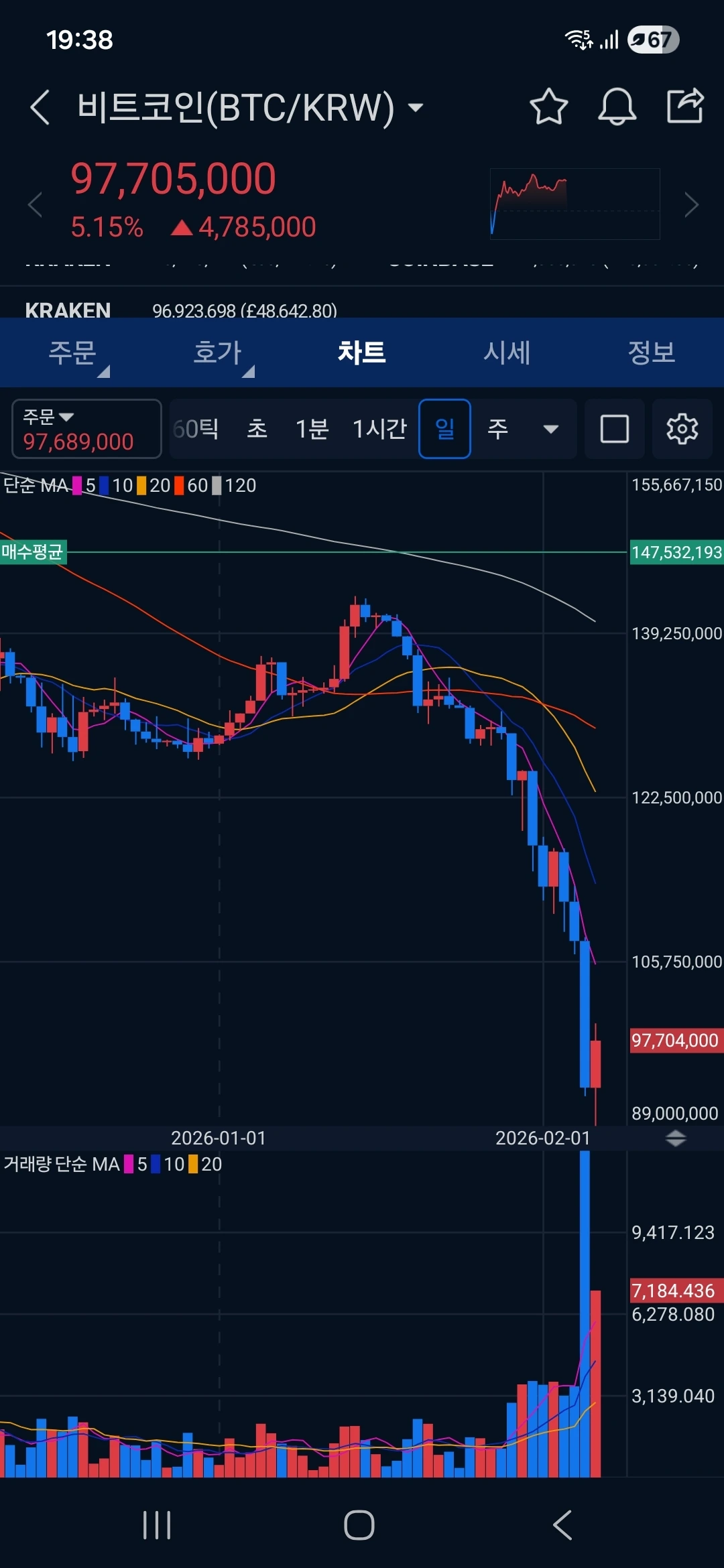 금과 은이 폭락하더니, 새벽엔 암호화폐가 폭락했다. 전문가가 얘기하던 최저점 같다. 그러나, 나 같은 쫄보는 더 떨어질까 무섭다. 또 하필이면 여유자금이 없다.