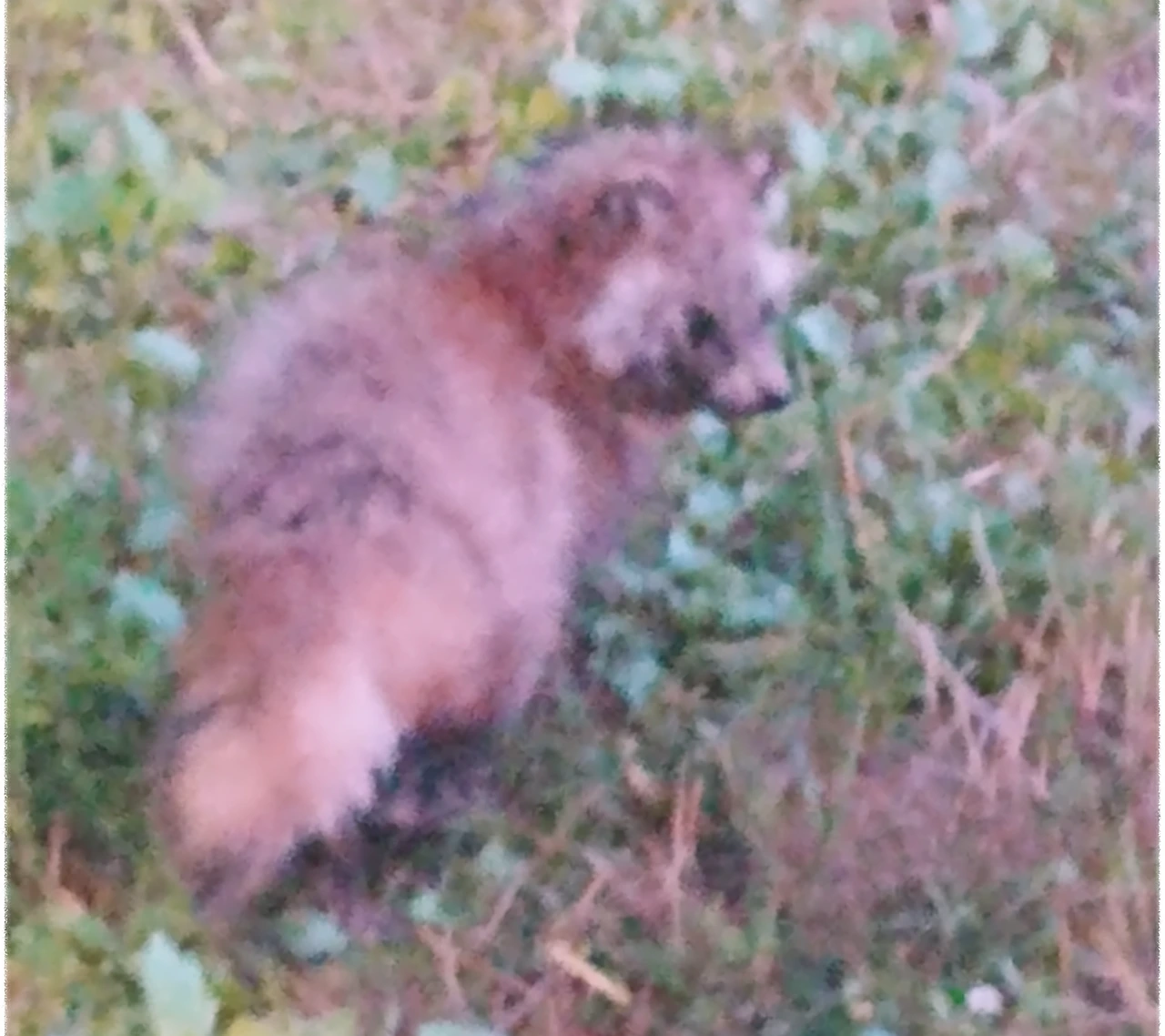 퇴근길에 산에서 너구리를 만났다. 고양이들을 위한 사료가 있는 곳인데, 그걸 털어먹으려고 온 것 같았다. 혹시 개인가 고양인가 한참을 쳐다보다 사진을 찍었다. 자기도 날 멀뚱히 쳐다본다. 너구리가 맞는 것 같다.
