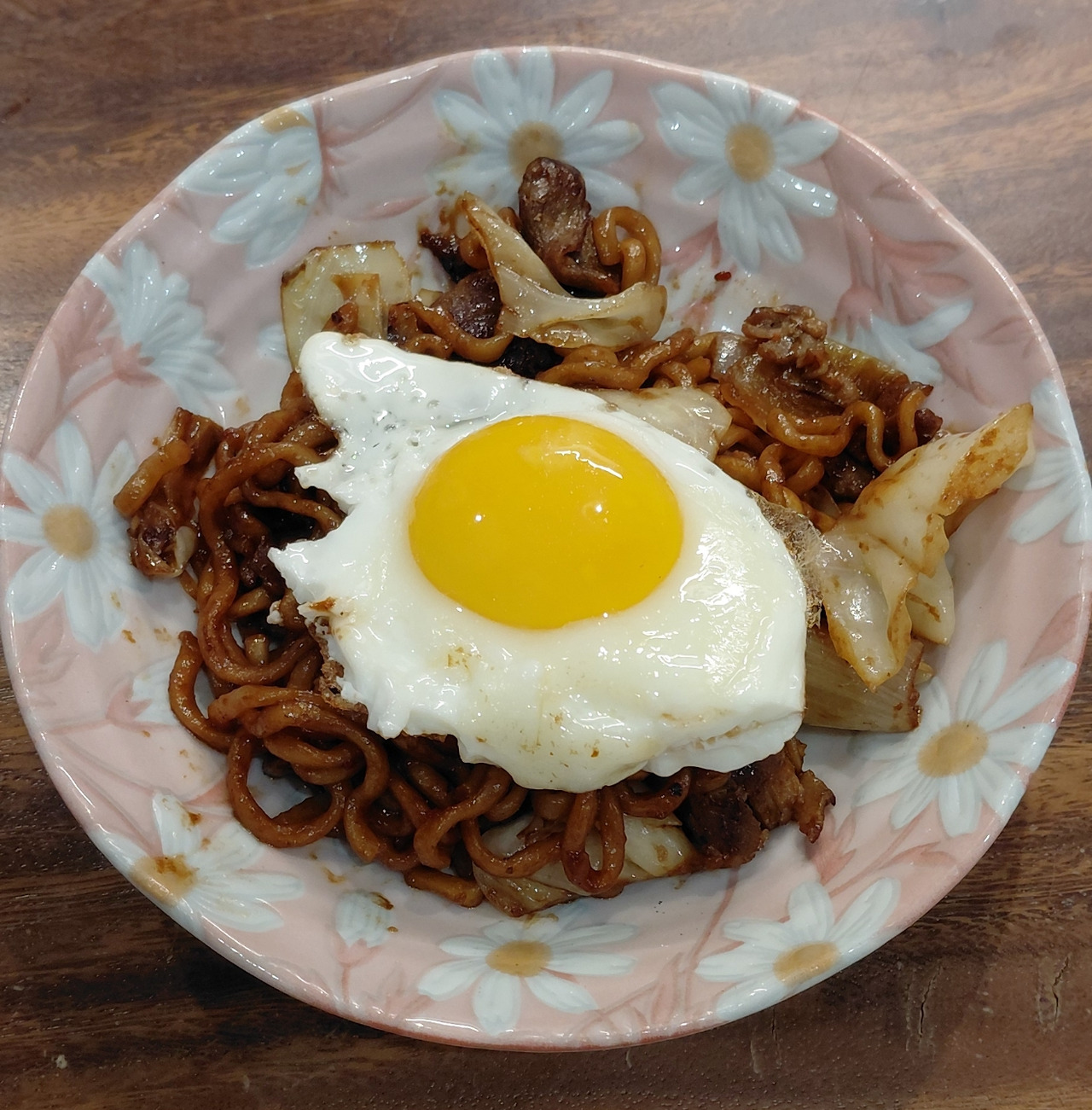저녁으로 짜파게티를 먹자 하신다. 돼지목살을 먼저 구운 후에 양배추와 양파를 볶고, 면을 삶아 비볐다. 맛있다.