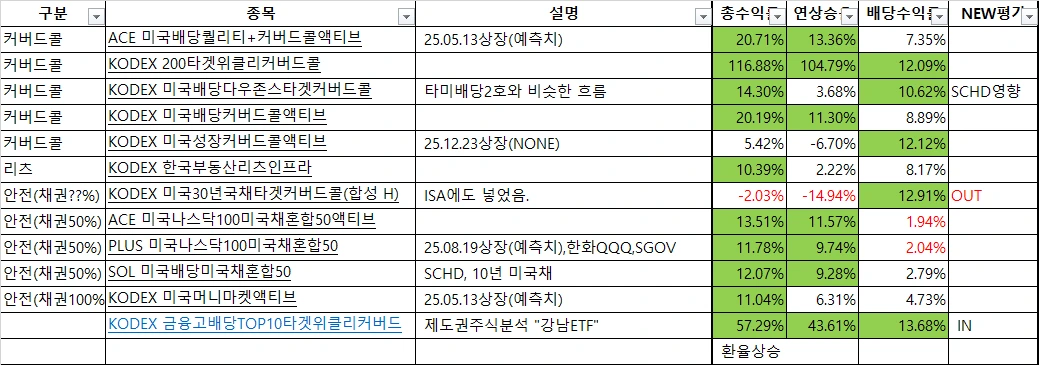 IRP에 넣은 월배당커버드콜과 채권형 ETF의 수익률을 분석했다. 한 종목 퇴출하기로 했다.