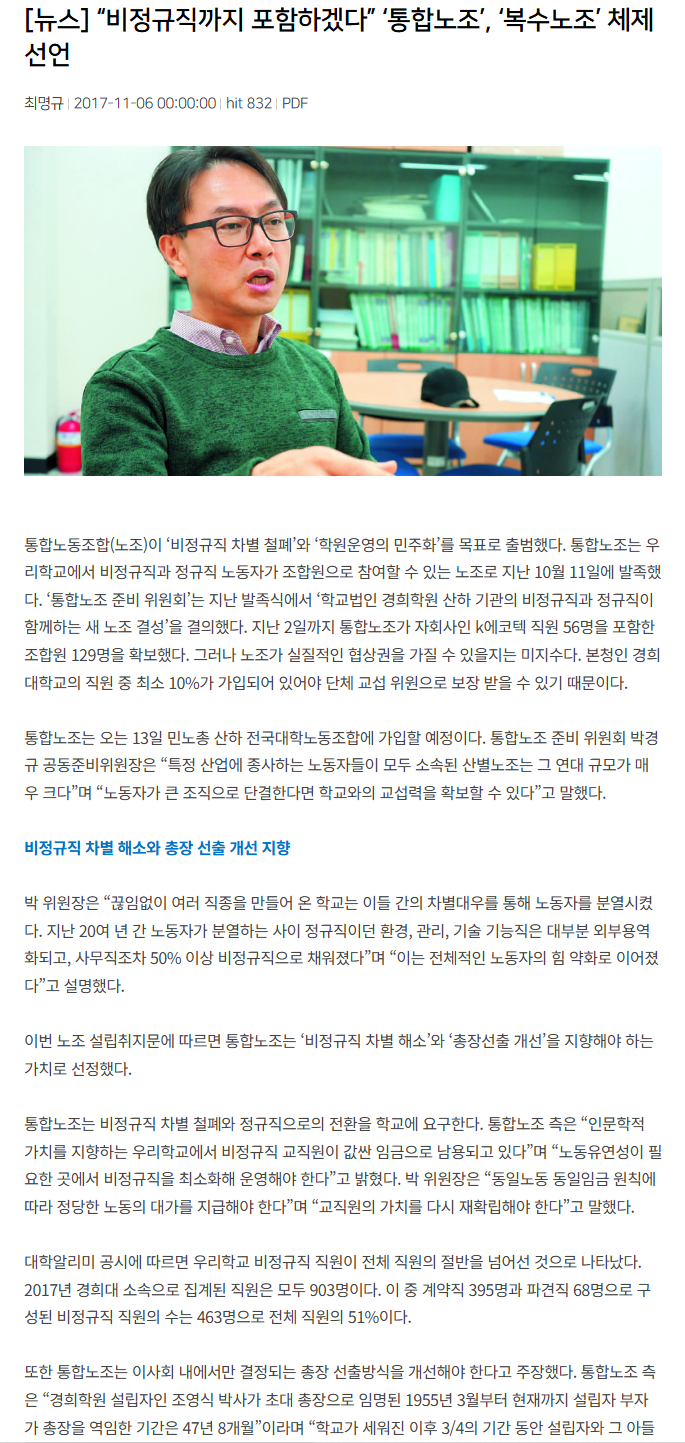 어쩌면 노동조합 활동을 시작하게 된 것도, 이런 성향 탓이었을지 모른다. 시간이 지나면서, 단순히 업무나 부서를 넘어서, 계급화된 전체 대학사회의 부조리, 불공정, 갑질, 비민주적인 의사결정, 노동차별, 권위주의적인 조직문화를 두고 볼 수 없었던 것 같다. 40대 초반에 4년간 경희대학교노동조합 임원 활동을 하고, 2017년 가을부터 2023년 말까지 만 6년 동안 민주노총 전국대학노조 경희학원지부장으로 일했다. 거의 10년의 세월 동안, 난 얼마나 의미 있는 변화를 이뤄냈을까? 5%? 10%? 리더십을 넘겨줄 사람을 찾을 수 없어, 이러다가는 어쩌면 정년퇴직까지 지부장을 계속해야 할지 모른다고 생각했다.