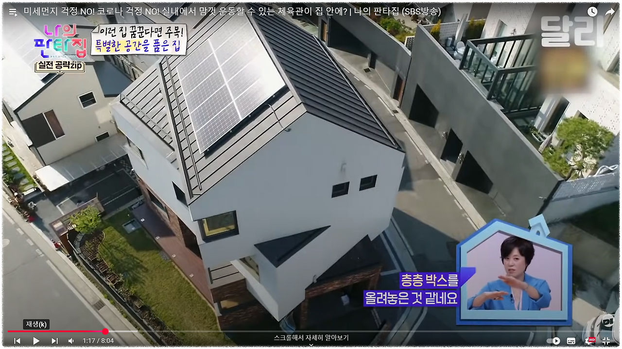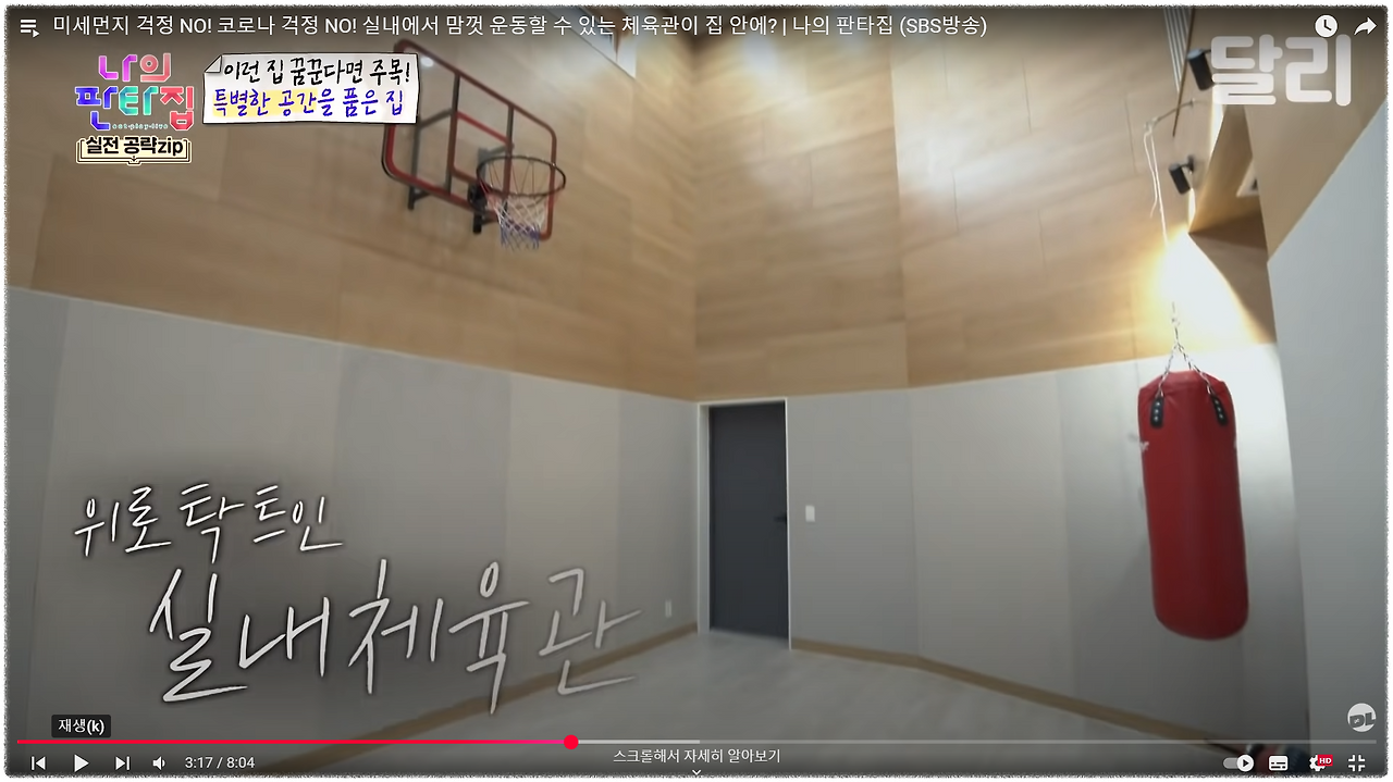 어느 날 SBS에서 연락이 왔다. 연예인들이 자신의 꿈꾸는 집을 얘기하면, 방송국에서 그 로망과 부합하는 집을 찾아서 실제로 살아보게 하는, 건축예능 프로그램을 파일럿으로 만들고 있다고 했다. 그런데, 출연예정인 연예인 양 모 씨의 로망이 실내 농구장이 있는 집인데, 실외 농구골대가 있는 집은 제법 있지만 실내에 농구장이 있는 우리 집을 겨우 발견했다고 했다. 우리 집은 농구장이 있는 게 아니고 그냥 농구골대가 매달아 놨을 뿐이라고 했지만, '이큰별'이라는 메인 PD는 꼭 촬영할 수 있도록 허락해 달라며 간곡히 부탁했다.