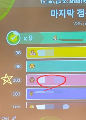 이름 그대로 회사에 대한 Quiz가 쏟아졌다. 처음 사업을 시작한 연월일부터 오늘 참여한 사람은 총 몇 명인지 등 운에 맡겨야 하는 문제들만 줄줄이 나왔다. 1등은 아예 넘볼 수 없는 등수였고 퀴즈 중후반이 되자 겨우 101등에 안착했다. 그런데 이때, 100등도 상품을 주겠다는 MC의 말에 '어머 이거 되겠는데?' 하면서 100등 굳히기에 들어갔다. 정답을 체크하기까지 걸린 시간도 순위 변동에 영향을 줬다. 그래서 100등을 유지하고자 급기야 아는 문제도 천천히 정답을 맞히며 속도 조절을 했다. 맨 마지막 문제에서 충분히 늦게 정답을 제출했지만, 아쉽게도 등수가 조금 올라가서 최종 97등이 되었다. 결국 상품을 받진 못했지만 이때부터 이미 슬슬 흥이 올랐다.