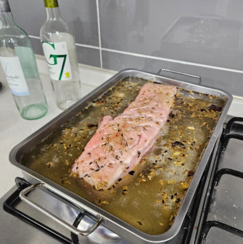 씨름 끝에 와인 두 병과 함께 트레이에 빠진 고기를 반신반의하며 오븐에 넣었다. 팔각, 카다멈, 펜넬 씨앗 등 다양한 향신료도 넣었더니 온 집안에 향신료 냄새가 풍겼다. 너무 배가 고팠지만, 처음 해보는 요리니까 고든램지 매뉴얼에 최대한 따르기 위해 2시간을 꼬박 기다렸다. 기다리는 중간에는 약한 오븐 실내 조명등으로 살짝 보이는 통오겹의 비주얼에 감탄하며 군침을 흘리고 있었다.