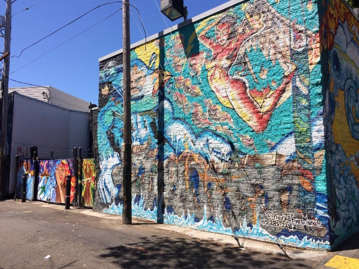 미션 디스트릭트는 또 벽화로도 유명하다. 에어비앤비 호스트가 벽화를 보려면 꼭 가보라고 했던 Balmy Ally는 길 찾기를 잘 못해서 가보지 못했지만 24th mission지하철역 근처의 맥도널드 주변에도 꽤 많은 벽화가 그려져 있다. 그냥 대충 그린 게 아니라 아주 예술혼을 불사른 벽화들이다. 영혼이 자유로운 예술가들의 동네라고 할만하다.