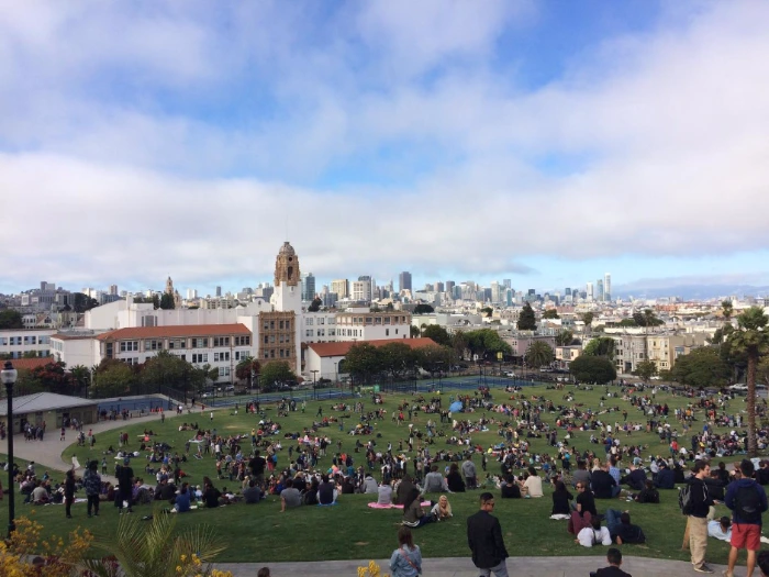 남북으로 이어져 있는 Dolores street의 중간쯤에는 미션 디스트릭트의 명물 돌로리스 공원 (Dolores Park) 이 있다. 주말이어서 그런지 꽤 많은 사람들이 공원을 즐기고 있다. 가족이 나와서 앉아서 도란도란 얘기를 하거나 연인이 어깨동무를 하고 앉아 있다. 한쪽에는 동호회인지 아니면 그냥 친구들인지 십여 명의 사람들이 모여 게임을 하고 있다. 다들 커피를 들고 있거나 맥주를 들고 홀짝 거린다. 우리나라 한강공원에서 흔히 볼 수 있는 돗자리나 텐트 따위는 없다. 내리쬐는 햇볕을 받으며 있는 그대로를 즐기고 있다.