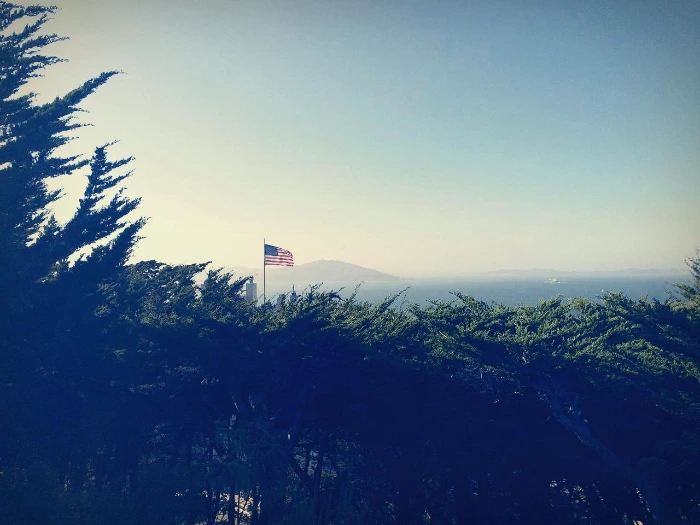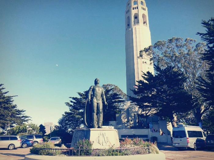 복작복작한 롬바드 길을 빠져나와 Pioneer Park로 향했다. 이곳은 미합중국 건국 100주년을 기념하기 위해 만든 공원이다. 가운데에 콜럼버스의 동상이 있고 그 옆으로 Lillian Coit Memorial Tower가 보인다. 바다 쪽으로 보이는 경치와 미국 국기의 조화가 근사하다.