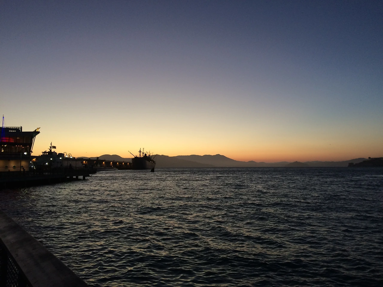 Fisherman's Wharf에서의 일몰. 북적거리는 육지와는 달리 바다는 매우 평화롭다. 저 멀리 보이는 산너머로 해가 지고 있고 부둣가에는 불빛이 하나 둘 살아나고 있다. 과연 나는 Bay Area에 와 있구나...