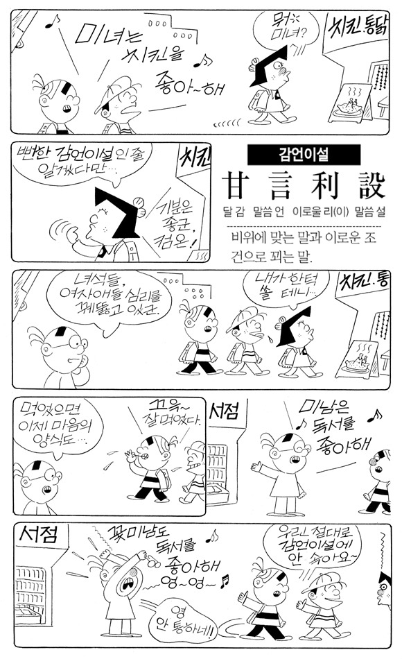 요즘은 학습 만화 시장이 상당히 커졌고, 만화계에서 실력 있는 유명한 작가들이 학습 만화를 많이 그린 것으로 알고 있습니다. 하지만 제 어린 시절에는 먼 나라 이웃나라 정도의 만화가 학습만화라 분류할 수 있는 정도였고, 교육을 위해 만화를 그릴 정도로 품을 들이는 일은 드물었던 것 같습니다. 때문에 따개비 한문 숙어는 제 어린 시절 최고의 학습만화였습니다. 아무리 책을 좋아한다 해도 읽는데 많은 집중력이 필요한 보통의 책 보다 만화로 그려진 책은 훨씬 재미있었고, 지금처럼 유튜브나 넷플릭스 같이 재미있는 매체가 없던 시절이었기에 수도 없이 많이 읽었습니다. 그러다 보니 암기 능력이 전혀 없는 제가 자연스럽게 많은 수의 사자성어를 외울 수 있게 되었습니다. 덕분에 어디서 아주 무식해 보이지는 않게 된 것 같네요.
