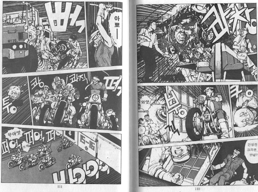 나중에 아키라가 애니메이션으로 유명하다는 것을 알게 됐는데, 만화책으로 볼 때는 다소 징그러울 정도로 사실적인 선이 난무하는 조금 거부감 있는 그림체 였습니다. 그럼에도 박진감 넘치는 연출과 점점 말도 안 되게 커지는 스케일의 줄거리에 빠져서 끝까지 보게 되었던 갓 같습니다. 그냥 재미있게 본 정도의 이 작품은 나중에 일본 대중문화 절정기를 상징하는 대단한 작품이라는 것을 알게 되었습니다.