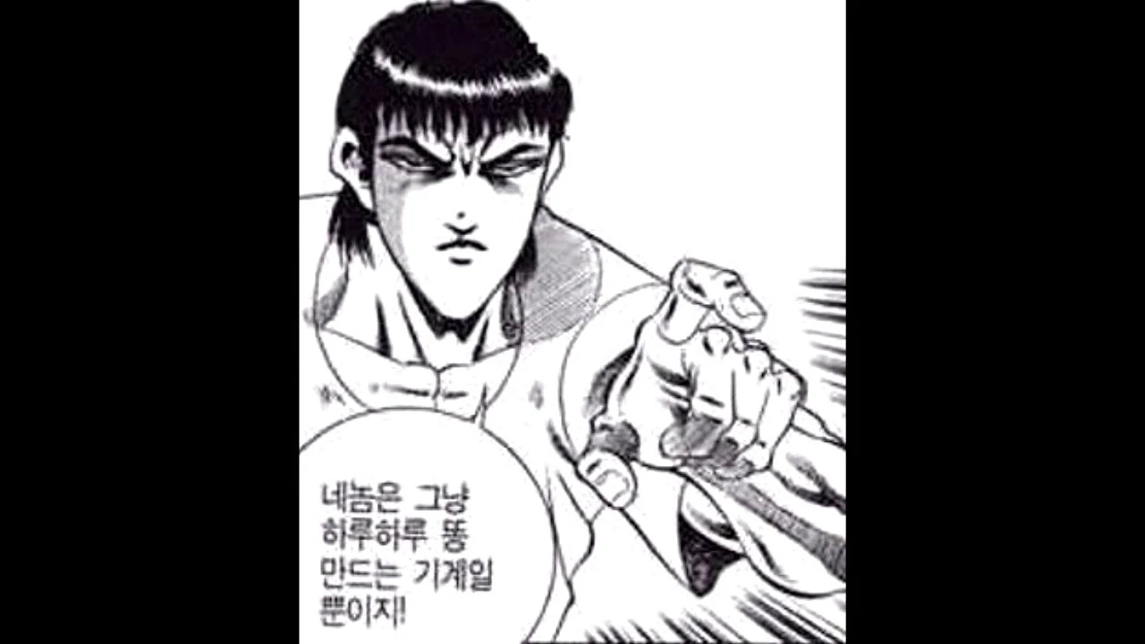 김성모 만화 '스터프 166 km'의 한 장면죽지 않는다면 어떨까요? 사람의 수명이 천년, 만년이 된다면 삶의 의미를 찾을 수 있을 것도 같습니다. 의미를 찾기에는 인간의 삶이 너무 짧을지도 모르죠. 하루살이가 볼 때 인간은 영원에 가까이 사는 것으로 보일 것입니다. 하지만 그럼에도 인간이 삶의 의미를 찾아내지 못하는 것을 보면, 인간의 수명이 아무리 늘어나도 삶은 의미를 찾지 못할지도 모르겠습니다. 김성모 화백의 만화에 나오는 "네놈은 그냥 하루하루 똥 만드는 기계일 뿐이지!"라는 대사를 반박할 수 있는 사람이 있을까요? 지구 밖에서 사람들이 움직이는 모습을 보면 개미처럼 의미 없이 여기저기 왔다 갔다 하며 먹고 싸기를 반복하는 것으로 보일 것입니다. 이 존재들이 훨씬 더 긴 기간을 움직이며 먹고 싼다고 크게 달라 보이지는 않을 것입니다. 어쩌면 생명체로 보지 않고 그냥 단순한 알고리즘으로 움직이는 개체로 볼지도 모르겠네요. 죽지 않는다면 영원히 무의미하게 의미를 찾아다니는 존재가 될 뿐입니다.