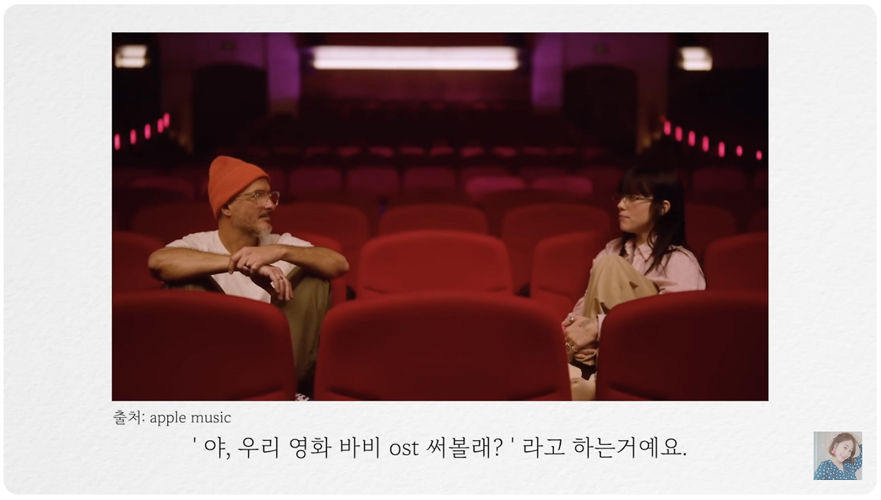 <바비> 수록곡을 쓰기 전까지만 해도 빌리 아일리시는 크게 슬럼프가 왔다고 한다. 2022년 겨울부터 아무것도 쓸 수 없었다고. 천재 소리를 듣는 빌리 아일리시도 영감이 바닥나서 일을 그만둘까 말까 고민했다.