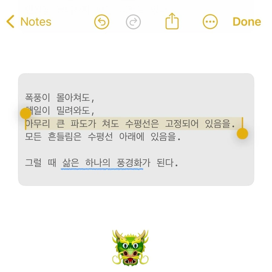 아무리 큰 파도가 쳐도 수평선은 고정되어 있음을.