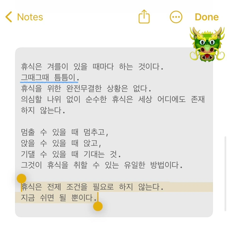 휴식은 겨를이 있을 때마다 하는 것이다.