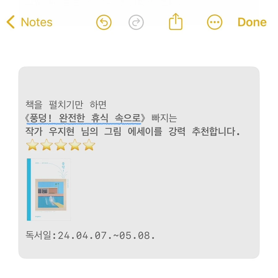 화가이자 작가인 우지현 님의 그림 에세이 《풍덩! 완전한 휴식 속으로》는 수영을 좋아해서 알게된 책이다.