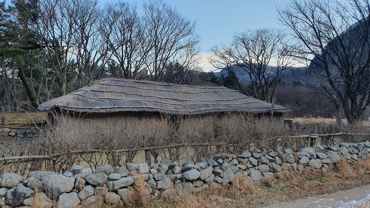 그래서 "선생님! 저랑 같이 가니 답답하시겠어요."하고 말씀을 건네면 " 하이구 아닙니다. 천천히 가면 되지요." 하시며 마음을 편하게 해주신다. 한참을 걷다보면 갈대밭이 나오는데 이 갈대를 어르신 네분이서 밑둥을 잘라서 묶고 계셨다. 그것을 왜 자르는지 여쭤보니 투막집을 보수하는데 사용한다고 하셨다. 투막집을 두 개 지나면 너른 매밀밭이 나오는데 메밀은 다 지고 이제는 매밀 줄기마저 다 매말랐다. 메밀꽃이 지고도 메밀밭은 이쁘다.