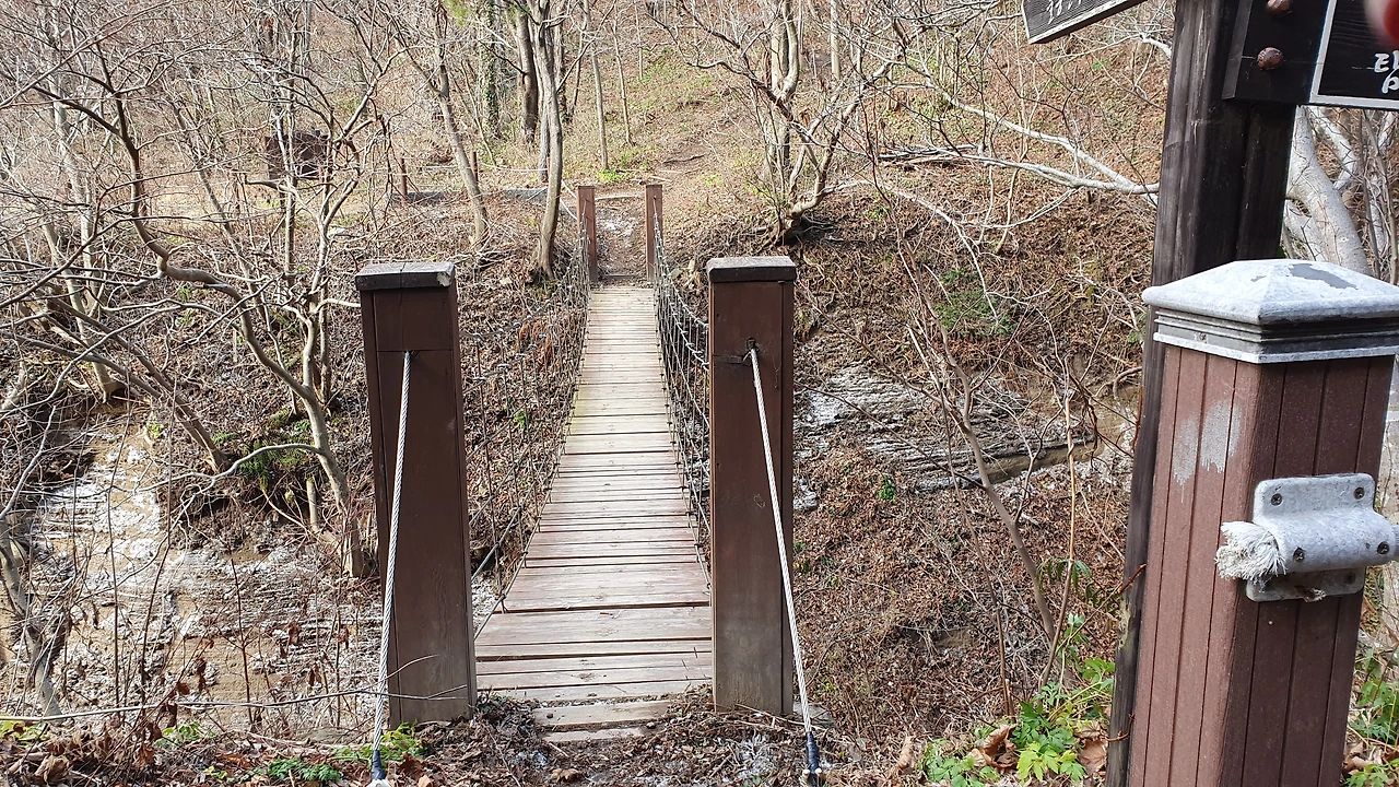 이 미라같은 허수아비가 지키고 서있는 메밀밭이 끝나는 지점에 작은 출렁다리가 있는데 이 출렁다리는 짧은데도 불구하고 심하게 흔들려서 걸어가면 짜릿하고 아찔함을 느낄 수 있다. 장난하길 좋아하는 나는 항상 이 출렁다리를 건너갔다가 왔다를 반복하고 지나간다.