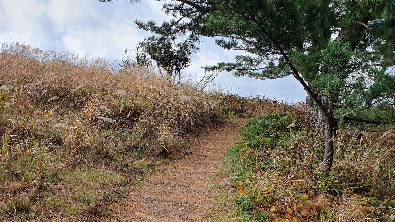 그곳을 돌아서 지나면 다시 바다가 보이고 산중턱에 작은 정자가 보이는데 그 정자로 올라가 바다를 한 참 보고나서 돌아오니 갈림길에 밧줄로 길 입구를 막아놓았다.