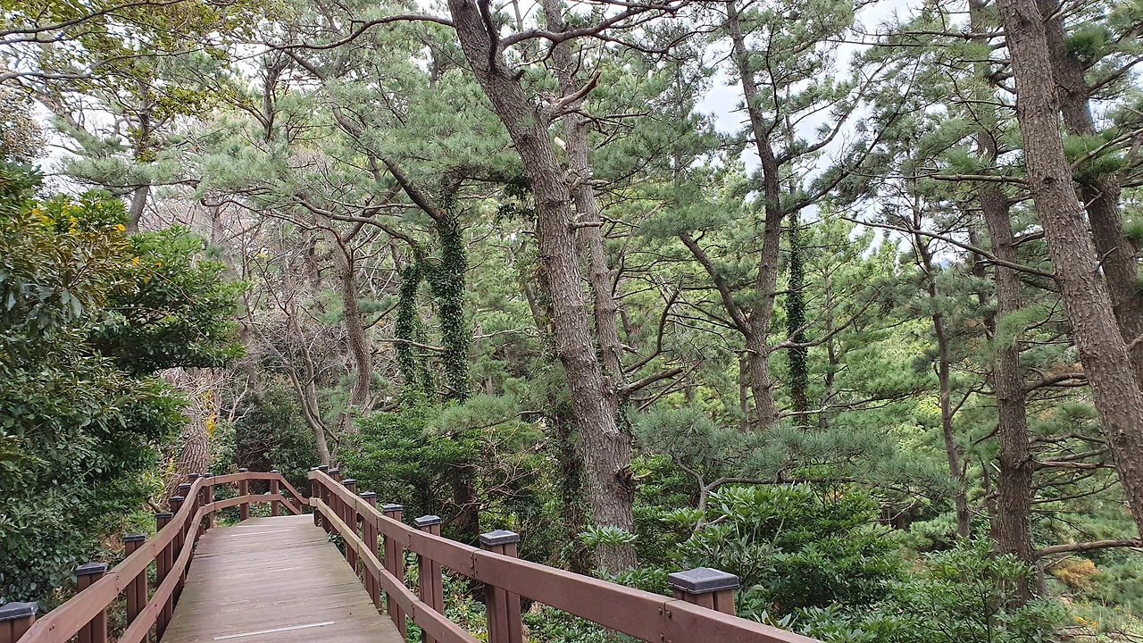 길은 예뻤다. 나뭇잎들은 떨어지고 앙상하지만 바닥에 초록색 풀들은 마치 한여름의 그것처럼 푸르다. 바닷바람이 불어오니 커다란 밀림의 것 같은 고사리들이 바람에 떼로 춤을 춘다. 나는 그새 즐거워졌다.