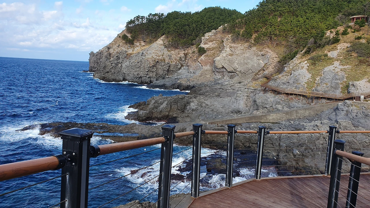 게스트하우스가 있는 마을을 쭉 지나서 해얀산책로를 올라갔다. 지그제그로 된 길을 따라 올라가면 탁트인 바다가 보이며 동료선생님이 표현한 달의 암석같은 기암괴석이 있는 곳에 데크를 따라 걷게 된다.