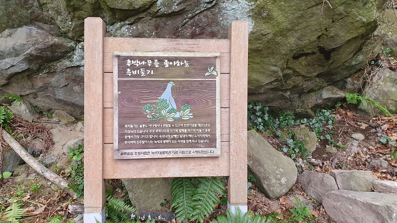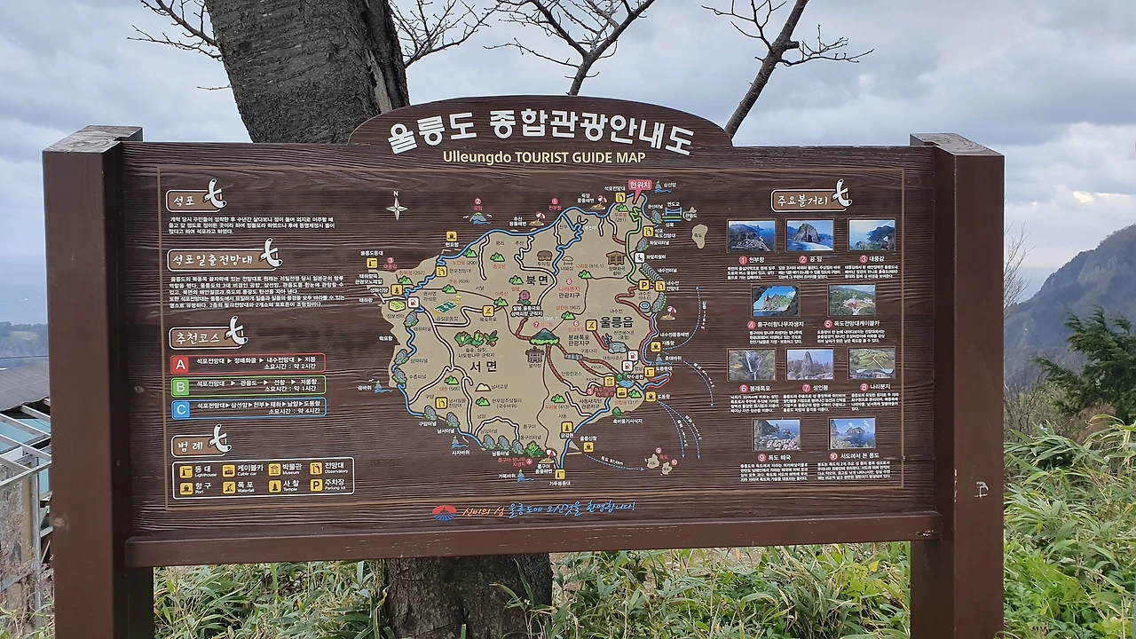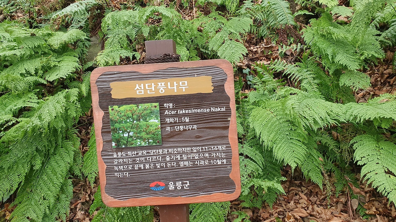 진한 아메리카노를 다 마시질 못해 손에 들고 진돗개와 이별인사로 쓰담쓰담 몇 번을 더 해주고 다시 길을 나섰다. 가는 곳곳에 드문 드문 울릉도지역 식물들의 생태에 대한 안내 표지판 혹은 울릉도 지역 식물에 대한 안내 표지판도 더러 보인다.