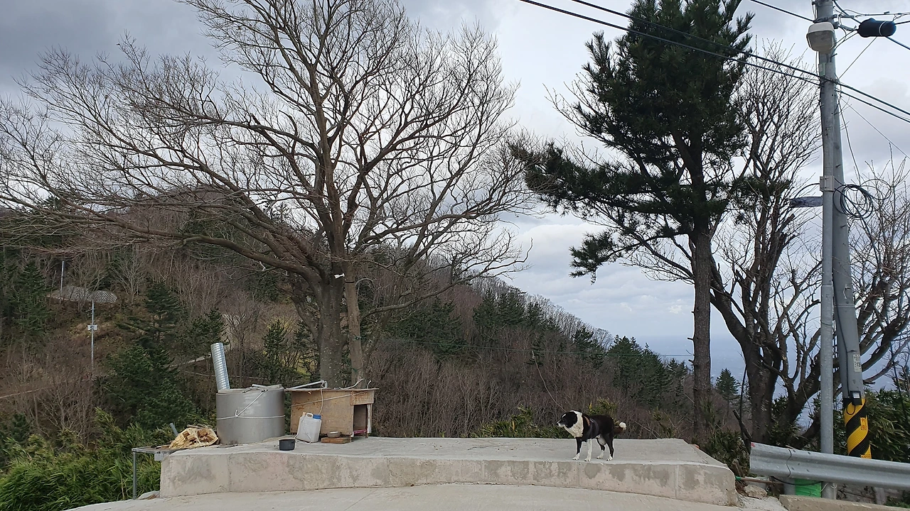 석포 길 입구 바람이 쎄게 부는 그곳에 개 한마리가 묶여있다. 개 주인집인 듯한 집은 오십미터정도 떨어져있다. 그 개는 혼자 그 차고 강한 바람을 맞으며 버티고 있었다. 얼마나 외로웠는지 처음 보는 낯선 사람에게 짖지도 않고 꼬리를 흔든다. 안타까운 마음이 들지만 그저 사진에 담고 동행한 분들을 따라 총총히 그곳을 지나쳐왔다.