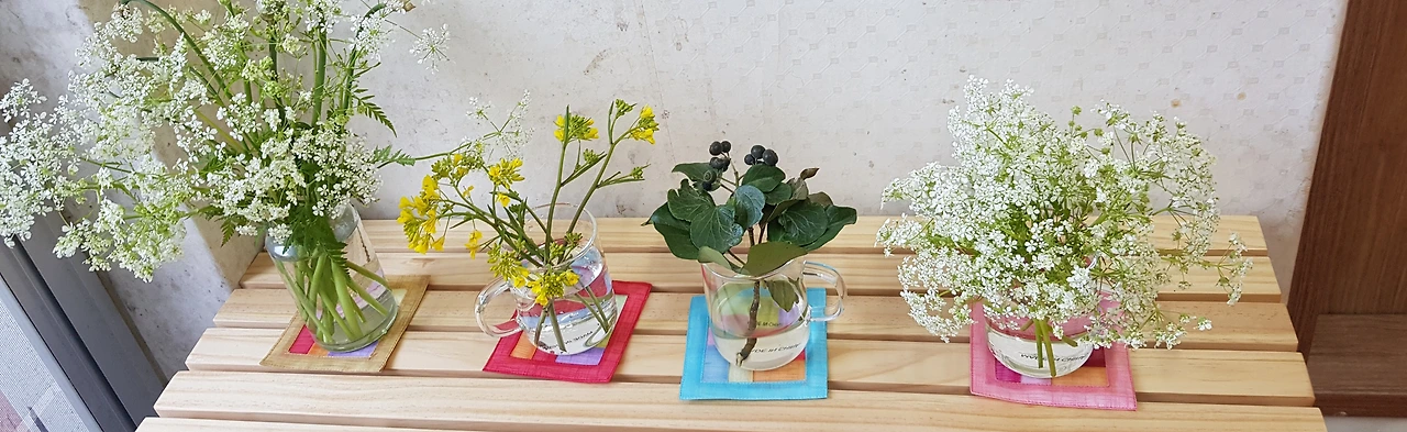 이제 화장실에는 세면대가 설치되었고, 고장난 세탁기를 버리고 새 세탁기를 넣었고, 현관에는 크기에 딱 맞는 신발장을 놓고 유리컵에 지천에 널려져 있는 흰 전호남루 꽃과 노란 유채꽃을 꽂아놓았고, 방문에는 가림막 광목커텐을 달았고, 부엌벽에는 내가 직접 수놓은 프랑스 자수 휴지케이스와 보자기 하나를 장식으로 걸어두었다.