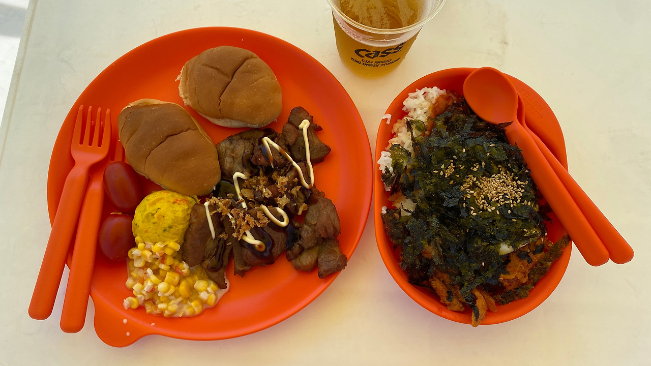 하지만 먹지 못했다. 길이 너무 길어서... 길은 점점 길어졌고 기다리며 먹기엔 햇빛이 너무 뜨거웠다. 결국 김말국은 먹지 못했고, 음료를 사 먹기에도 줄이 너무 길었다. 가장 빠르게 주문하고 받을 수 있는 건 맥주였기에 맥주를 의도치 않게 꽤나 많이 먹었다.