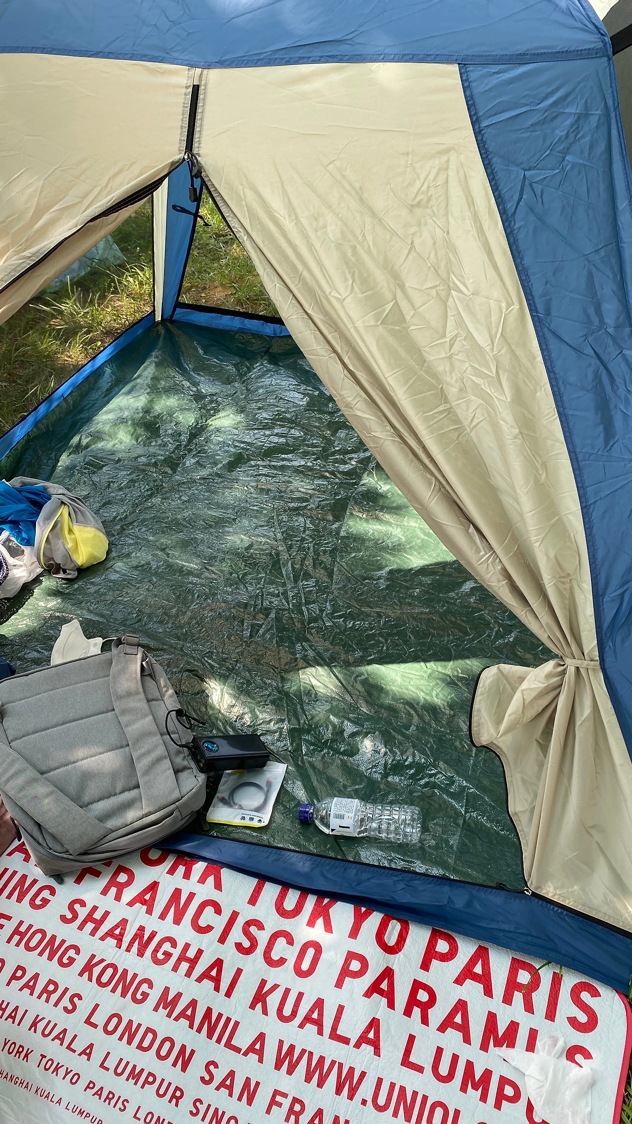 준비물은 갈아입을 옷과 텐트, 돗자리 하나, 우산,