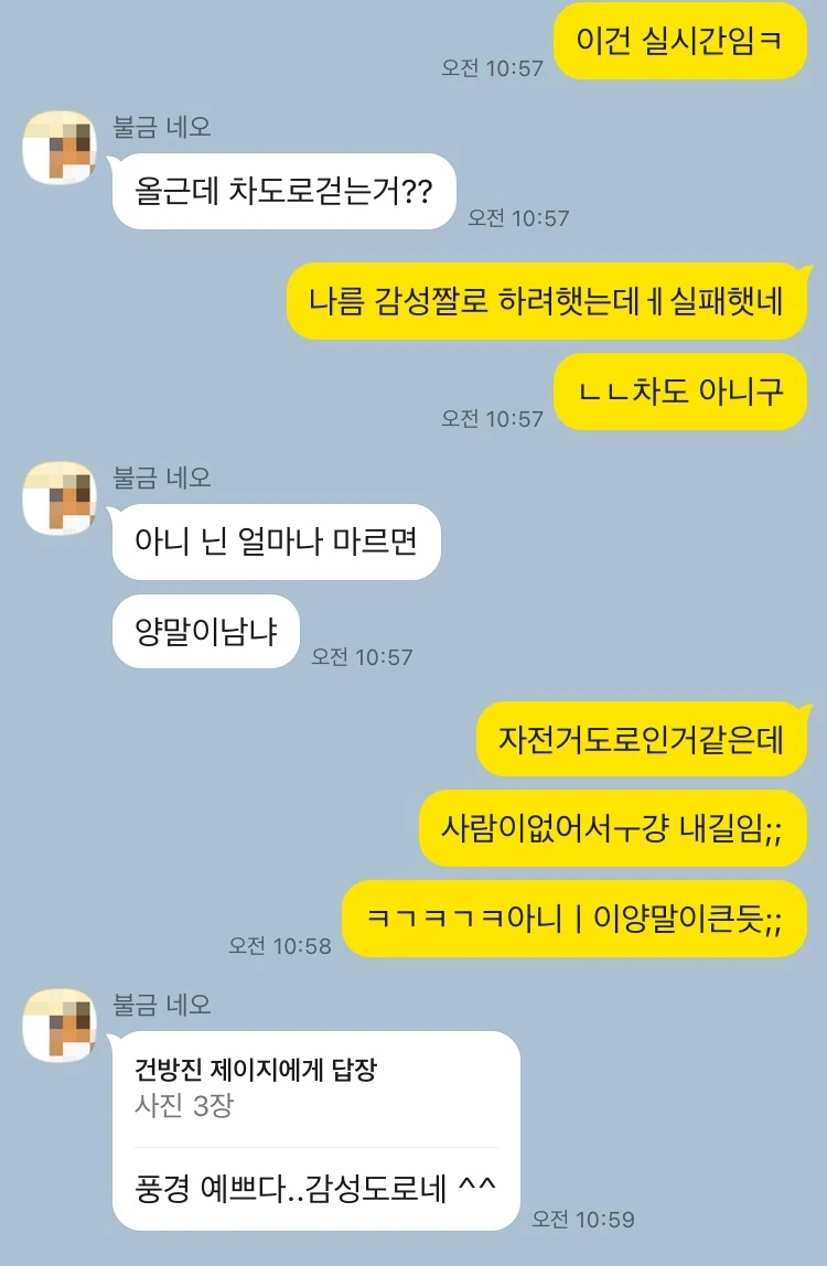 이건 여담인데, 저 당시 친구에게 산책로와 더불어 벤치에 앉아서 풍경을 배경으로 한껏 올린 내 양 발 사진을 보냈었는데, 반응이 저랬던 바람에 서로 깔깔거린 기억이 불쑥 난다. 지금 봐도 좀 웃긴 듯. 아닌가...