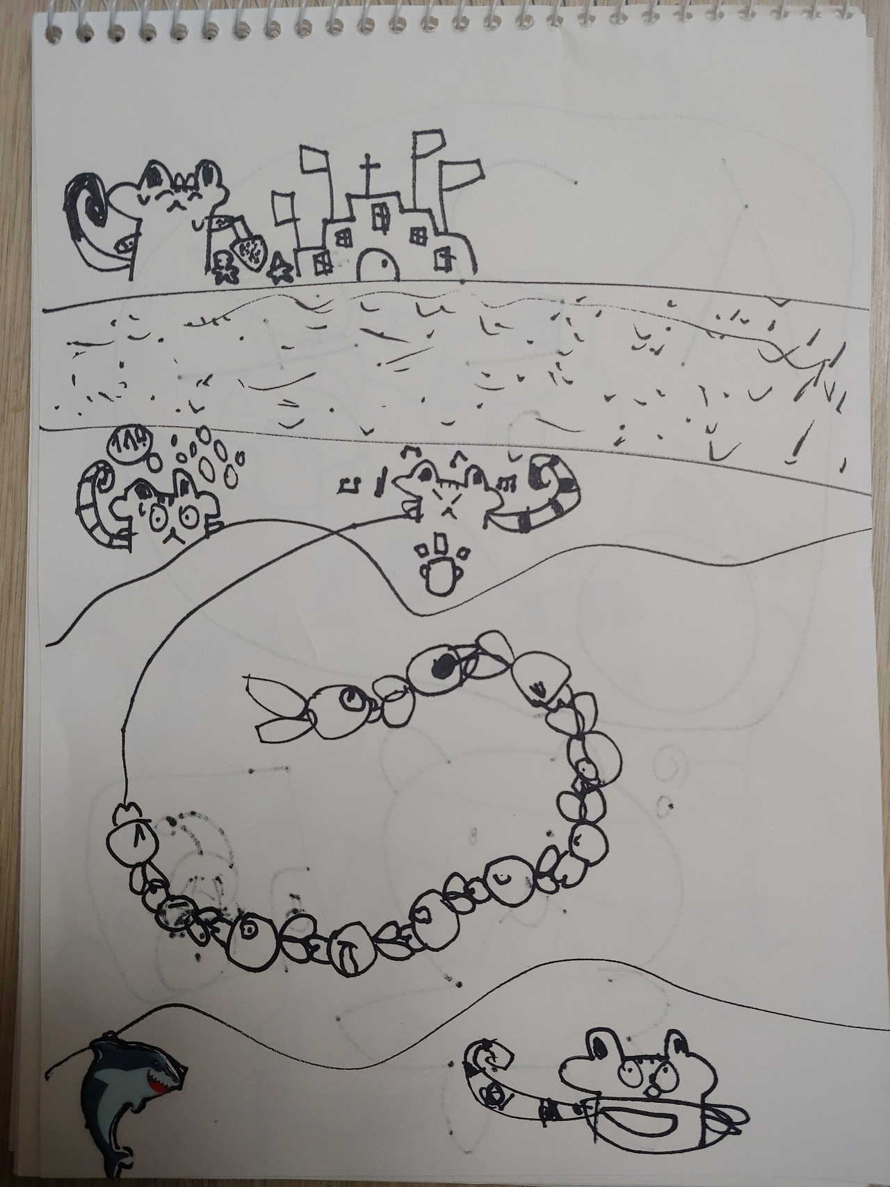 물고기가 물고기꼬리를물고 있었거든 .친구들을 구할려고.물고기를 너무 많이 먹어서 배가 빵 터질뻔했데.