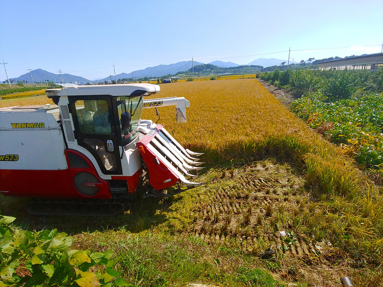 이름하여 ‘갓돌림’이라 부르던데 논이 네모의 모양이라면 논의 입구와 네 모서리 부분을 일정 베어주는 것이다. 베어놓은 벼는 모아서 묶어 발을 세워놓는 것이다. 이렇게 해 놓아야 콤바인이 베면서 모서리에 가면 방향을 쉽게 바꾸어 또 베어나갈 수 있는 것이다.