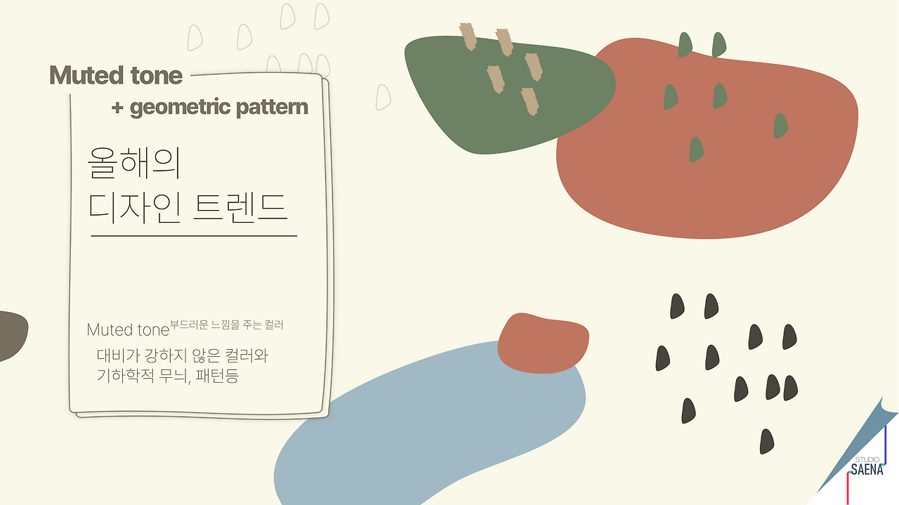 2. 컬러는 좀 더 부드럽게 + 기하학적 패턴(Muted tone&geometric pattern)