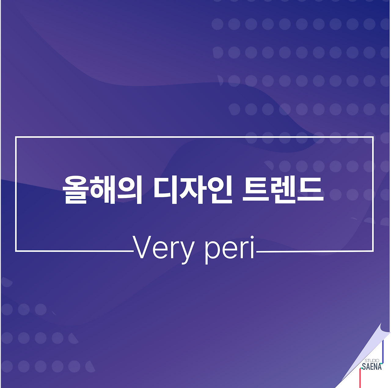 -컬러 이야기가 나왔으니 팬톤의 올해의 컬러도 짚고 넘어가야겠죠. 보라색 계열의 Very peri로 보라색의 인기는 한동안 계속될 것으로 보입니다. 단색보다는 비슷한 계열의 그라데이션으로 처리했구요, 패턴도 넣었습니다. 이런 점처럼 보이는 패턴들은 제가 자주 쓰는 방식입니다. 에낮서나 보고서 표지에 써야 할 때는 보고 계신 크기보다 좀 더 줄여서 배치합니다.