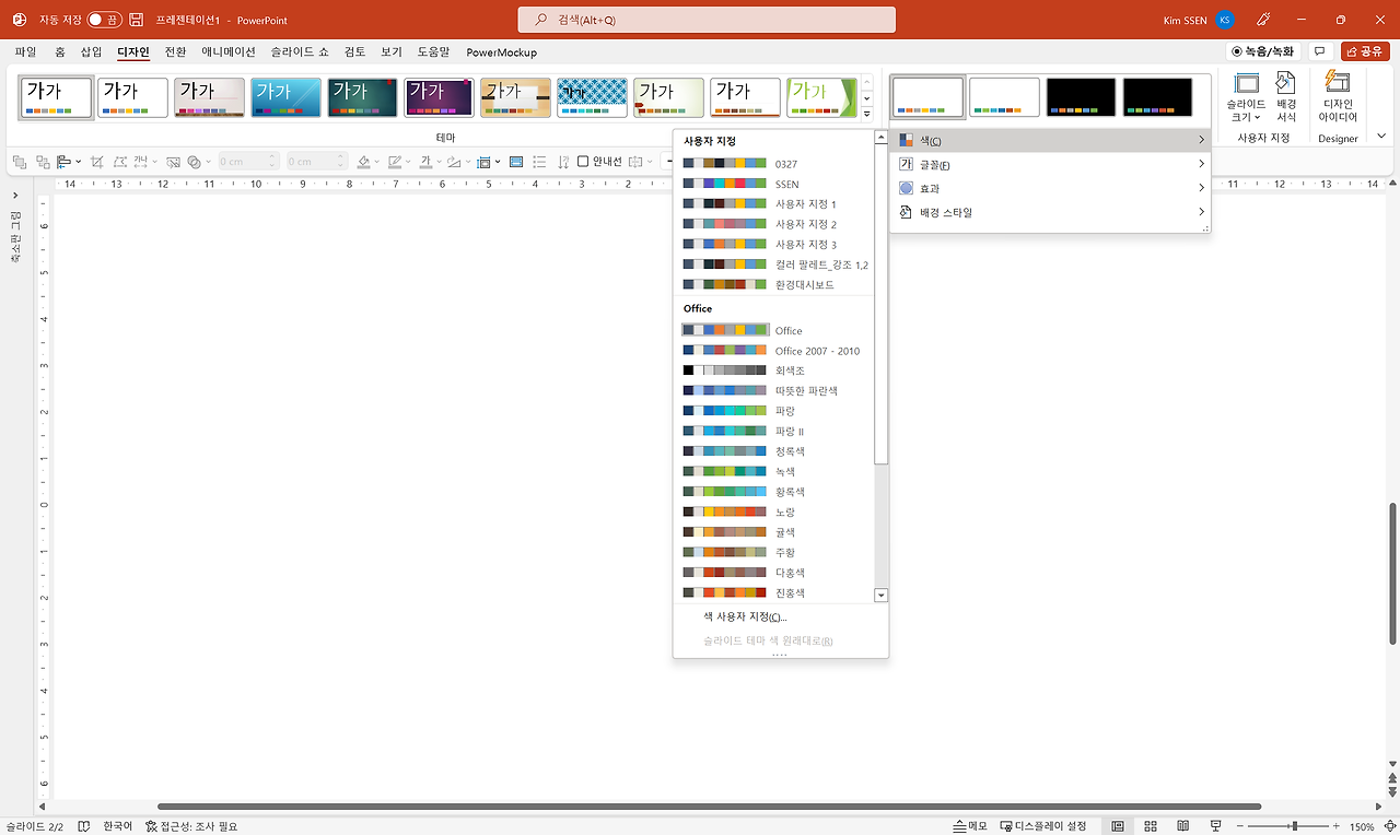 한번 지정한 색을 그대로 쓰고 싶은 여러분들에게, 슬라이드 마스터의 색 선정하는 방법을 추천합니다.