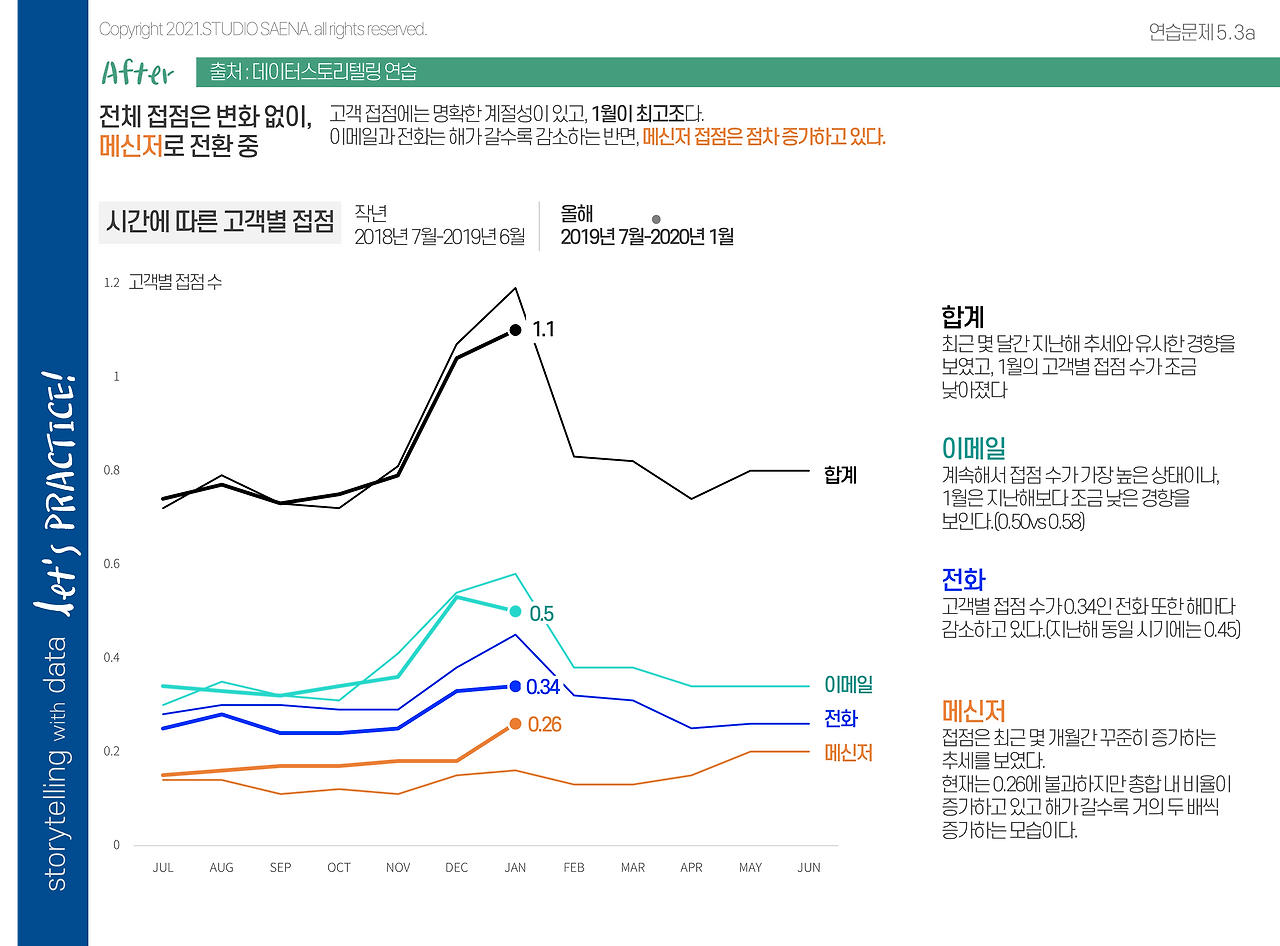 ★이 컨텐츠는 데이터 스토리텔링 연습!(콜 누스바우머 내플릭 지음 | 변혜정 옮김 | 에이콘출판 | 2021.06.30 출간)의 연습문제를 푸는 형식으로 진행되고 있습니다. 원본의 데이터는 책에 포함된 문제들이며 포스팅하는 이미지들은 제가 새롭게 제작한 것입니다.